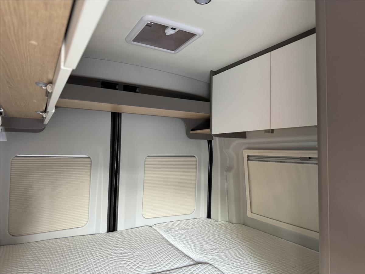 První majitel, Leasing možný, Možné financování vozidla., Zadní příčná postel + rozložitelné sezení na lůžko, topení Truma, DuoControl, venkovní vývod na sprchu, lednice s mrazákem 12/230V, střešní ventilátor, zadní nosič kol, Bi-Xenonové světlomety, vyhřívané čelní sklo, všechna okna se zatemněním a moskytiérou, dveřní moskytiéra, zatemnění kabiny Remis, odpojovač nástavbové baterie, tažné zařízení 2200/750 kg ... Celková hmotnost: 3500kg, provozní: 2820kg ..... Jízda pro 4 osoby, spaní pro 2/3 osoby