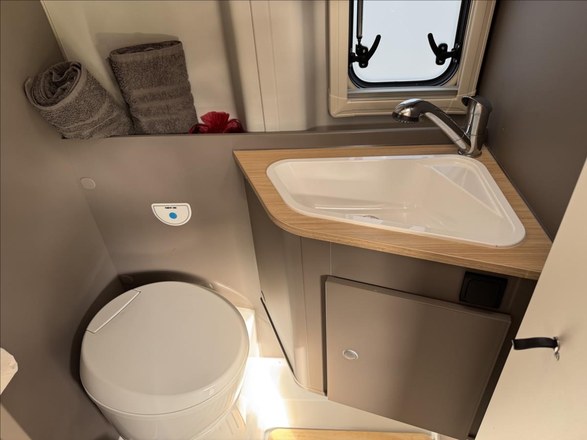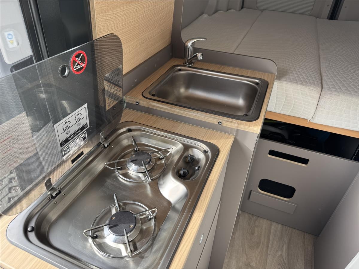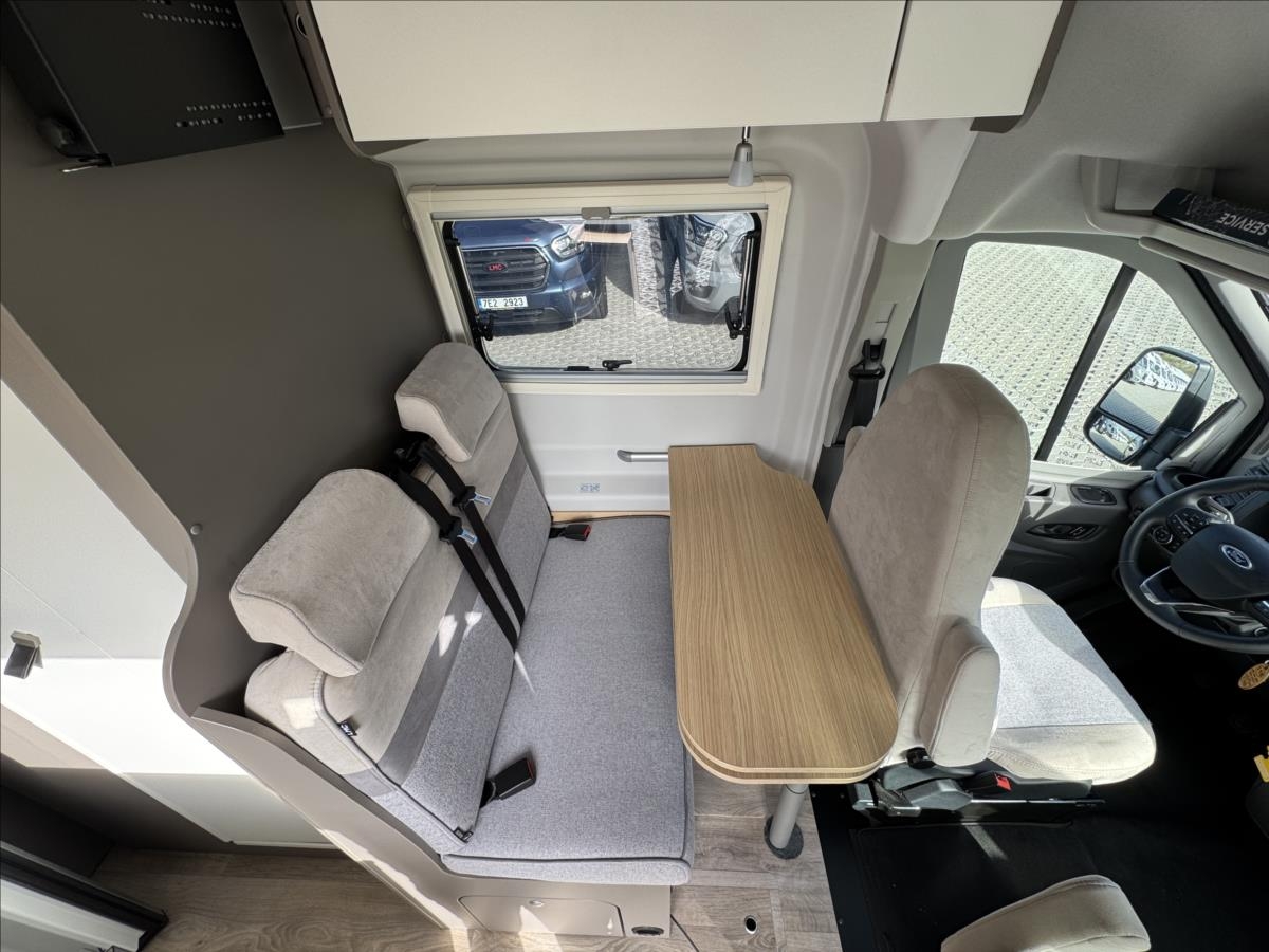 První majitel, Leasing možný, Možné financování vozidla., Zadní příčné postele, sezení rozložitelné na dětské lůžko, nosič 2 kol, všechna okna se zatemněním a moskytiérou, dveřní moskytiéra, topení Truma Combi, izolovaná a vyhřívaná odpadní nádrž, měnič napětí 600W, DuoControl, zatemňovací systém Remis, lednice s mrazákem .... Celková hmotnost 3500kg, provozní: 2922kg, Celková délka: 598cm, výška: 284cm, šířka: 212cm ... Spaní pro 2/3 osoby, jízda pro 4 osoby