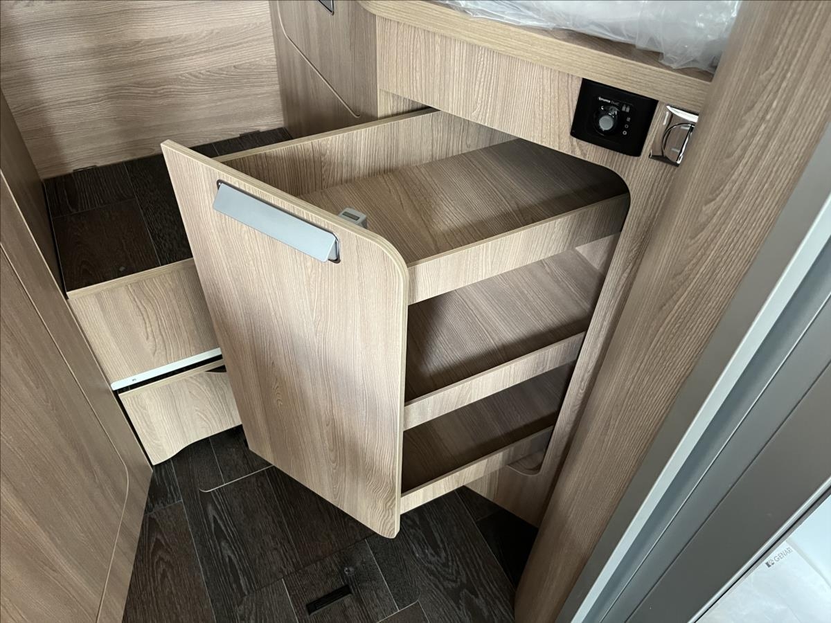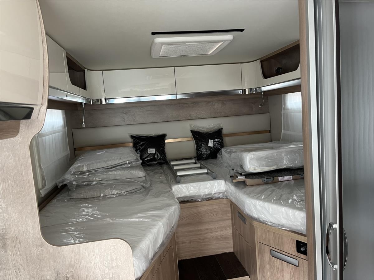 První majitel, Leasing možný, Možné financování vozidla., Zadní podélné postele s možností úpravyna jednolůžko, velká spouštěcí postel nad kabinu, duocontrol se systémem CS, lednice s mrazákem, dvojitá podlaha, TV + DVBT anténa, solární panel 190W, zatemňovací systém v kabině, všechna okna se zatemněním a moskytiérou, dveřní moskytiéra, izolovaná a vyhřívaná odpadní nádrž, digitální přístrojová deska, multimédium Alpine 11' se zobrazením zadní kamery a zrcadlením telefonů, nástavbová klimatizace Dometic, trezor, nosič 2 kol, ..... Celková hmotnost:3500kg, provozní: 3150kg... Celková délka: 659cm, výška: 297cm, šířka: 225 cm .... Spaní i jízda pro 4 osoby