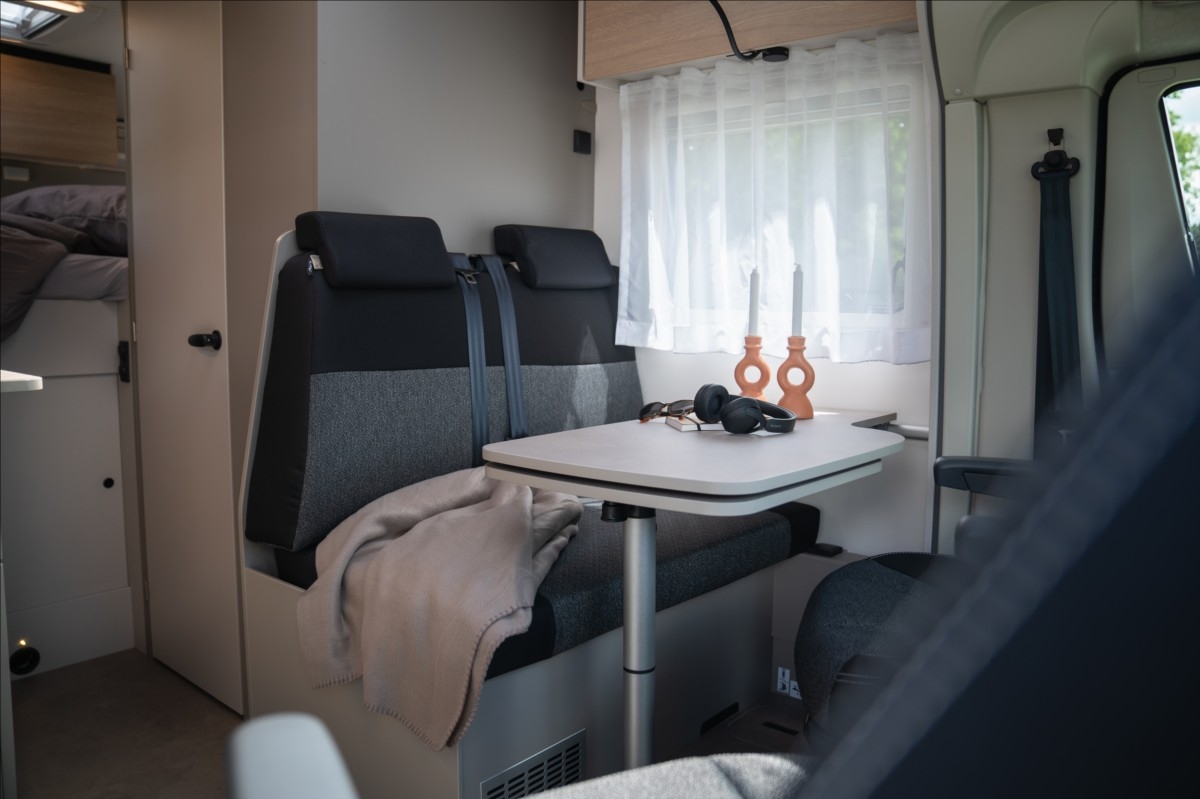 První majitel, Leasing možný, Možné financování vozidla., Zadní příčné lůžko, naftové topení TRUMA Combi vč. bojleru, izolovaná a vyhřívaná odpadní nádrž, podlahové vytápění teplou vodou, koberec v obytné části, všechna okna se zatemněním a moskytiérou, dveřní moskytiéra, lednice s mrazákem 132l, rozpoznávání dopravních značek, varování před opuštěním jízdního pruhu, nouzové brždění, detekce únavy, ... Celková hmotnost: 3500kg