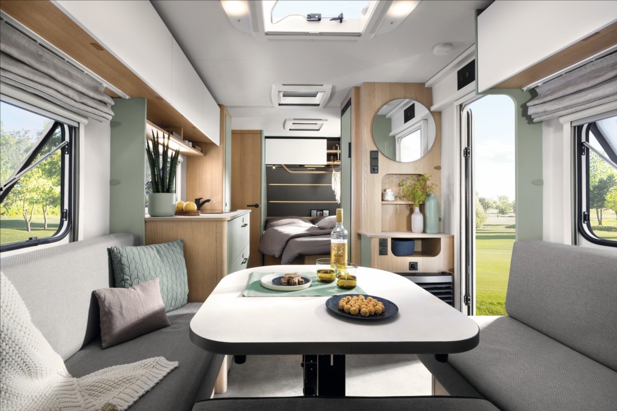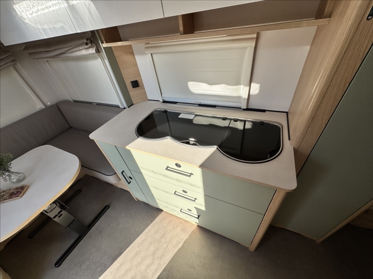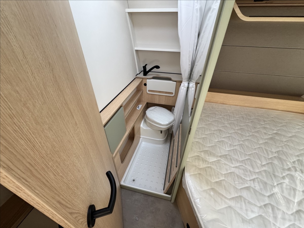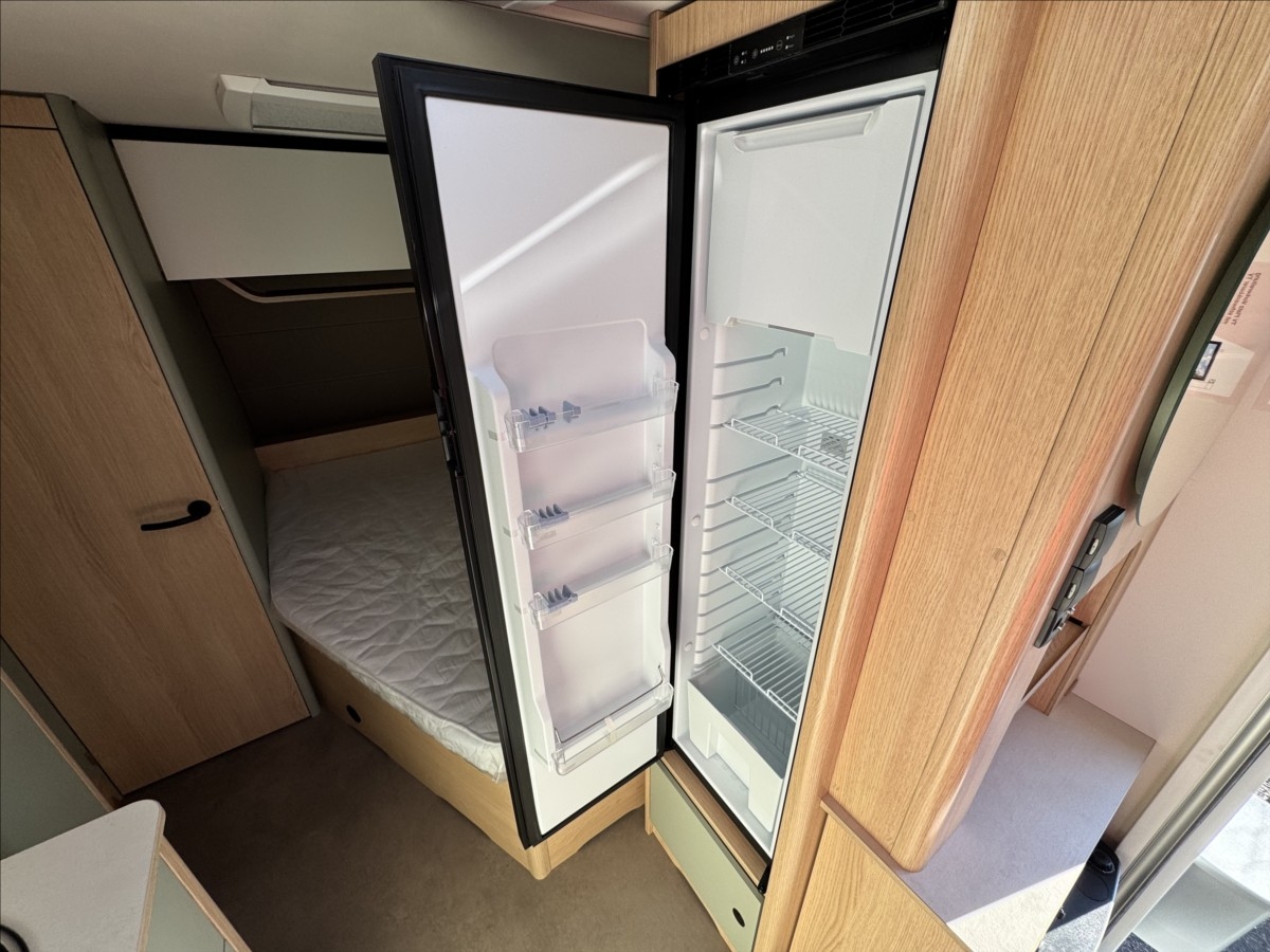Leasing možný, Možné financování vozidla., Zadní francouzské lůžko, sezení rozložitelné na dvoulůžko, lednice s mrazákem, 12V automatická recirkulace vzduchu, 95AH AGM baterie, Nabíječka, Indikátor napětí baterie, 12V hlavní vypínač, Sprchová baterie, Sprchový závěs s tyčí, Dřevěná rošt do sprchové vaničky, Sprchová vanička, příprava pro TV, 5litrový ohřívač vody (včetně směšovací baterie)Recirkulační systém pro plynové vytápěníVstupní dveře s oknem včetně zatemňovací rolety, včetně odpadkového koše25litrová nádrž na odpadní vodu, rolovacíIndikátor nádrže na čerstvou vodu2x USB zásuvky pro napájecí kolejnici, příprava pro klimatizaci, LED ambientní osvětlení, černá litá kola......Celková hmotnost:1500kg ...Provozní: 1113kg...SPANÍ PRO 4 OSOBY... KARAVAN SKLADEM