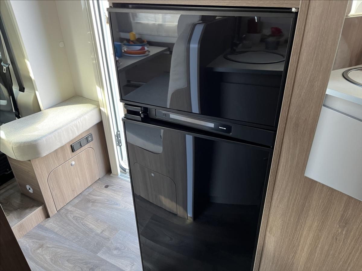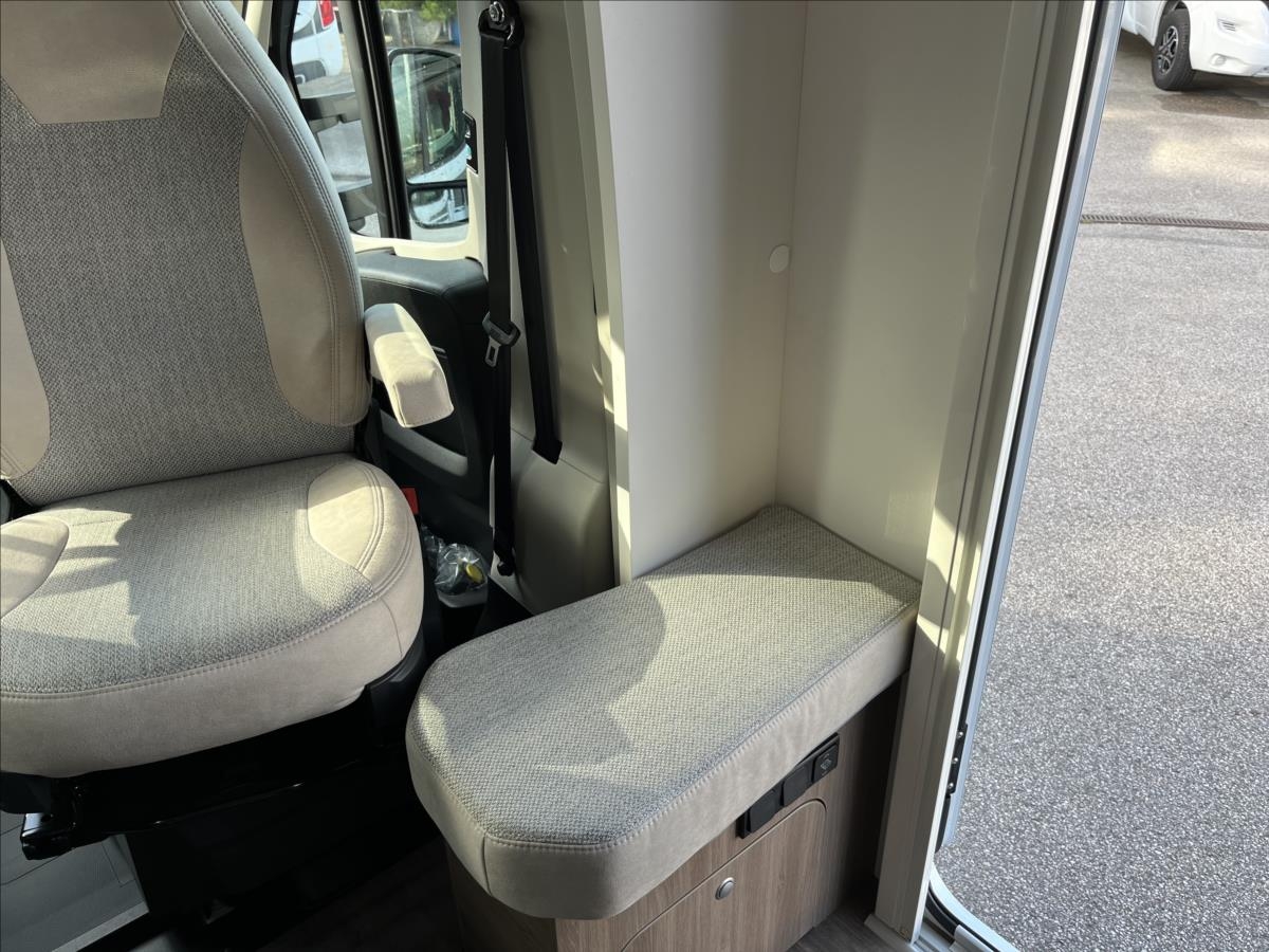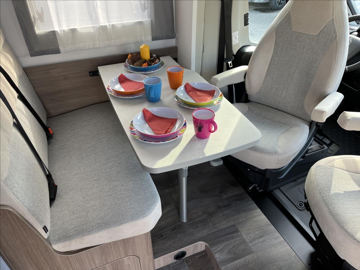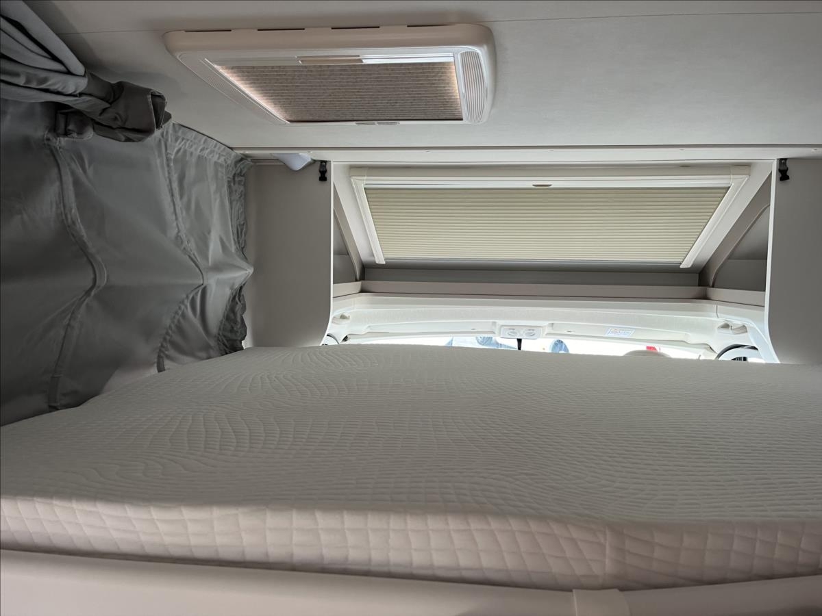 Úprava zadních jednolůžek na dvojlůžko, spouštěcí postel nad sezením, velká koupelna s otočným sprchovým koutem, velká lednice s odděleným mrazákem 12/230V/plyn, automatický satelit + TV 12V, bezpečnostní rámová okna, izolovaná a vyhřívaná odpadní nádrž, přední zatemňovací systém Remis, všechna okna se zatemněním a moskytiérou, dveřní moskytiéra, Duocontrol .... Celková hmotnost: 3500kg, provozní: 3006kg...Celková délka: 696cm, výška: 293cm, šířka: 232cm .... Jízda pro 4 osoby, spaní pro 4/5 osob