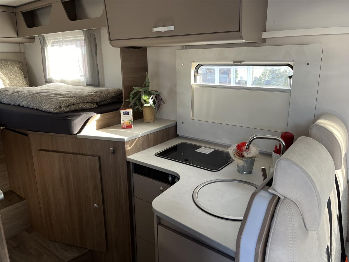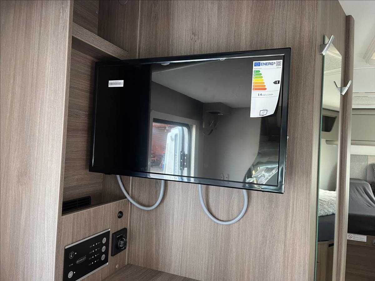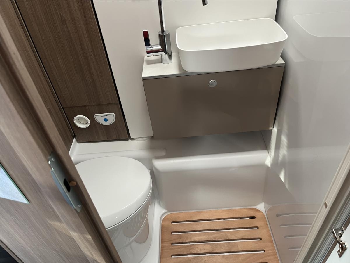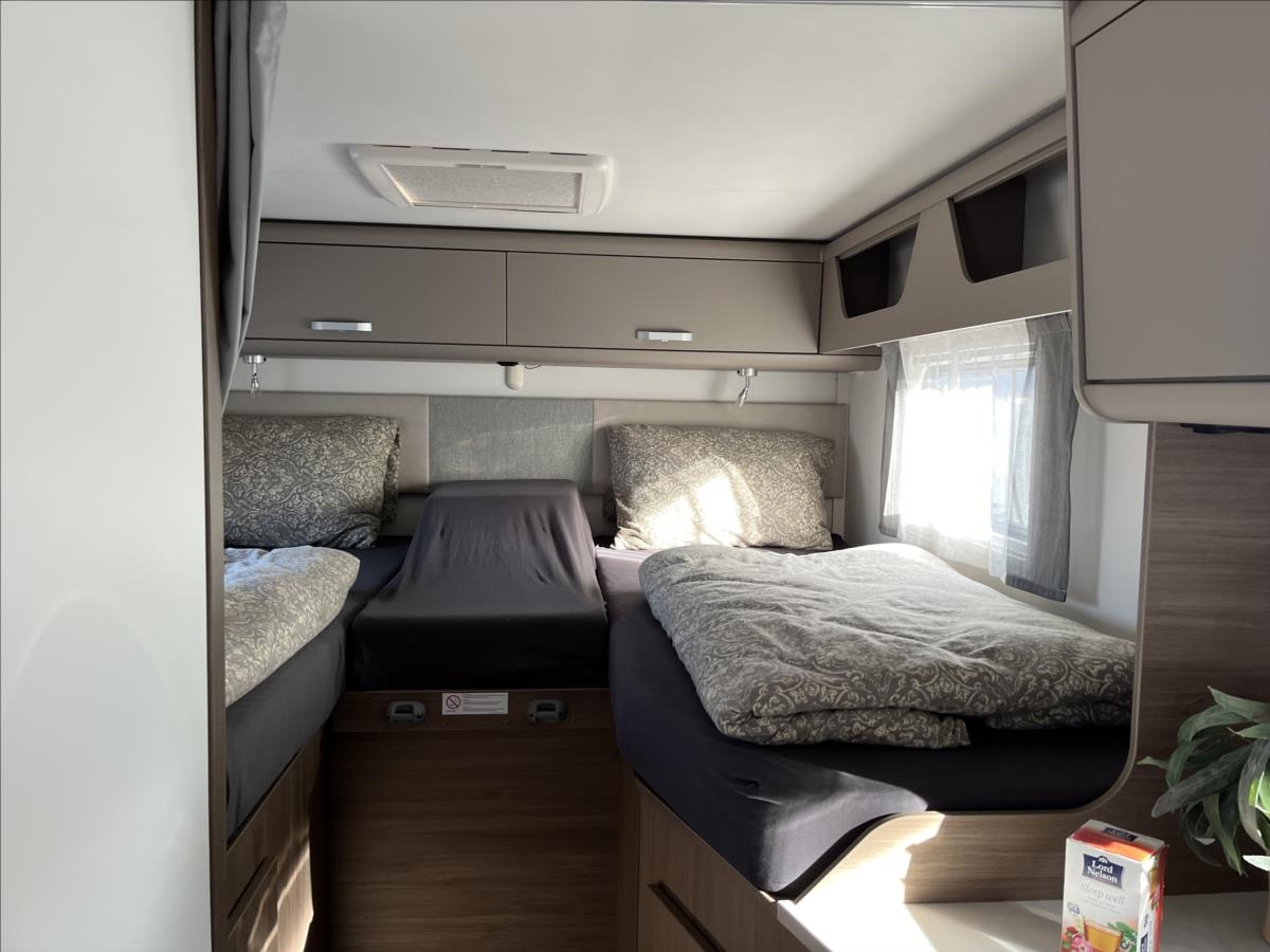 Úprava zadních jednolůžek na dvojlůžko, spouštěcí postel nad sezením, velká koupelna s otočným sprchovým koutem, velká lednice s odděleným mrazákem 12/230V/plyn, automatický satelit + TV 12V, bezpečnostní rámová okna, izolovaná a vyhřívaná odpadní nádrž, přední zatemňovací systém Remis, všechna okna se zatemněním a moskytiérou, dveřní moskytiéra, Duocontrol .... Celková hmotnost: 3500kg, provozní: 3006kg...Celková délka: 696cm, výška: 293cm, šířka: 232cm .... Jízda pro 4 osoby, spaní pro 4/5 osob