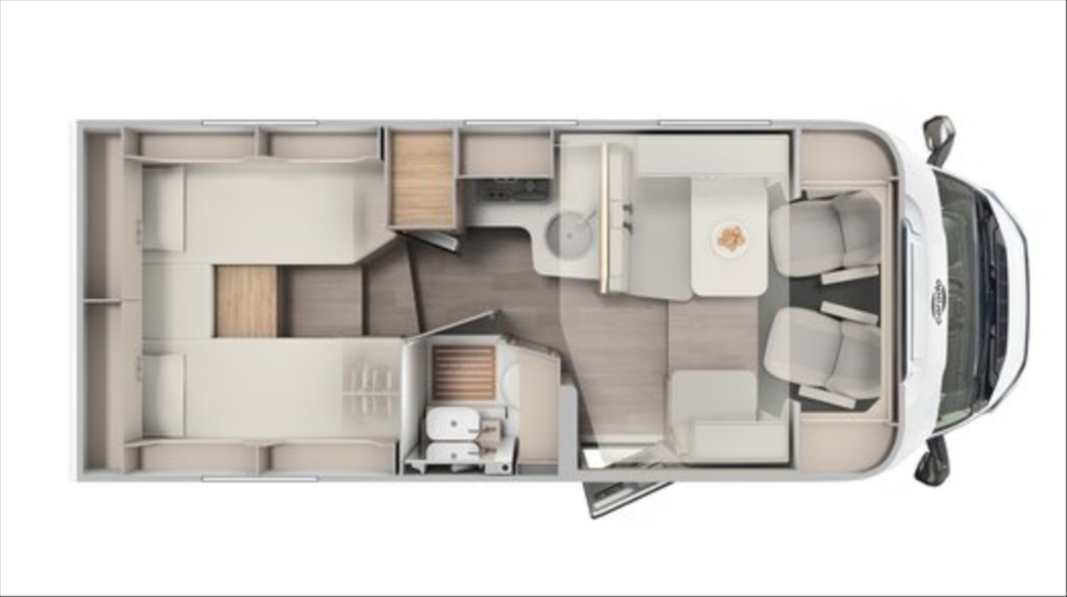 První majitel, Leasing možný, Možné financování vozidla., Zadní podélné postele s úpravou na jednolůžko, spoušěcí lůžko, úprava sezení na lůžko, dřevěný rošt v koupelně, kabelová příprava pro solární kabel, kabelová příprava pro TV 12V, kabelová příprava pro zadní kameru, topení TRUMA Combi 6, všechna okna se zatemněním a moskytiérou, dveřní moskytiéra, bezpečnostní rámová okna, druhé dveře do garáže, panoramatické střešní okno Skyroof, izolovaná a vyhřívaná odpadní nádrž, zatemnění kabiny REMIS, DuoControl, 2DIN rádio Alpine se zobrazením zadní kamery a zrcadlením telefonu .... Spaní pro 5 osob, Jízda pro 5 osob ... Celková hmotnost: 3500kg .... VOZIDLO SKLADEM