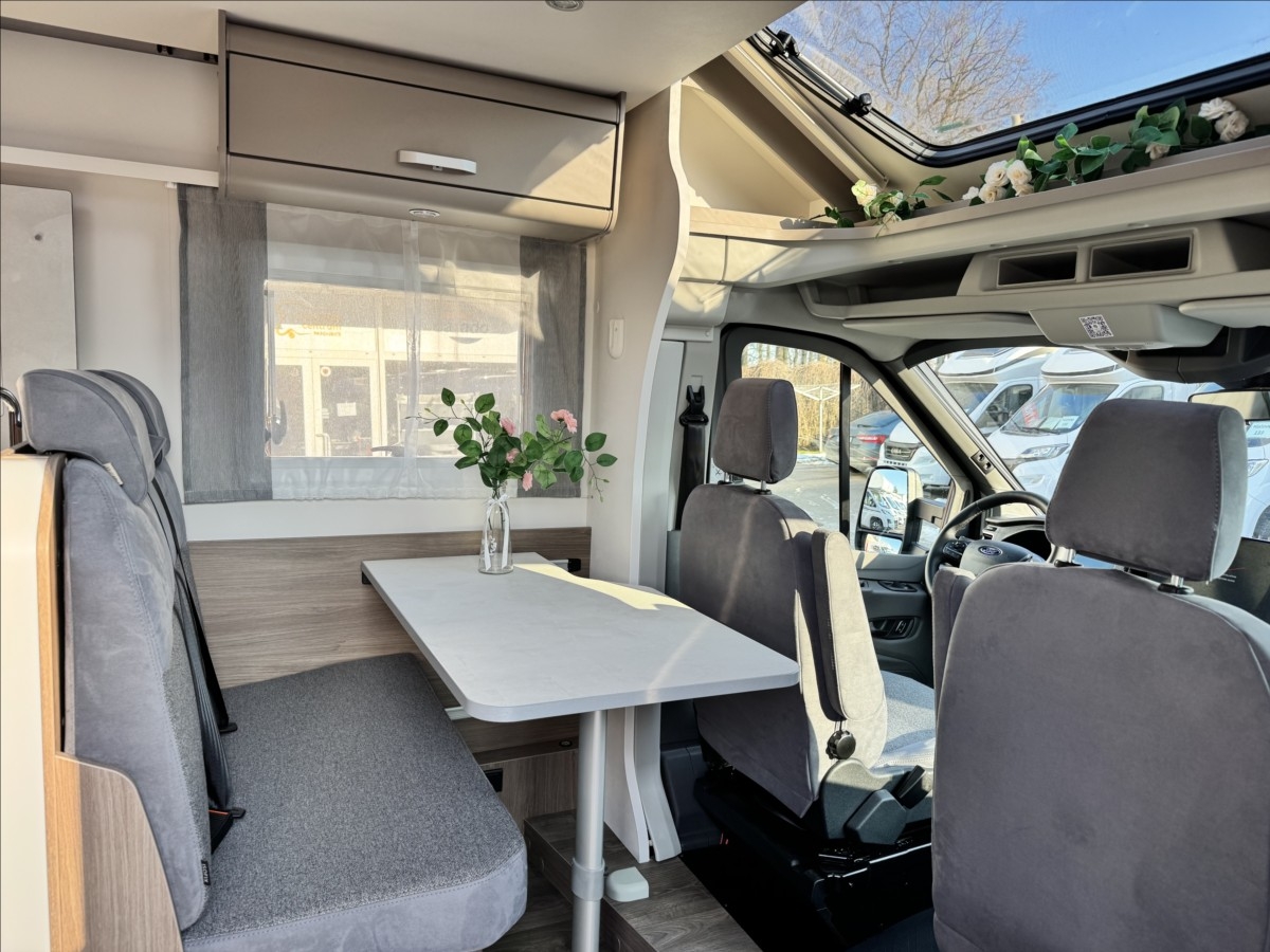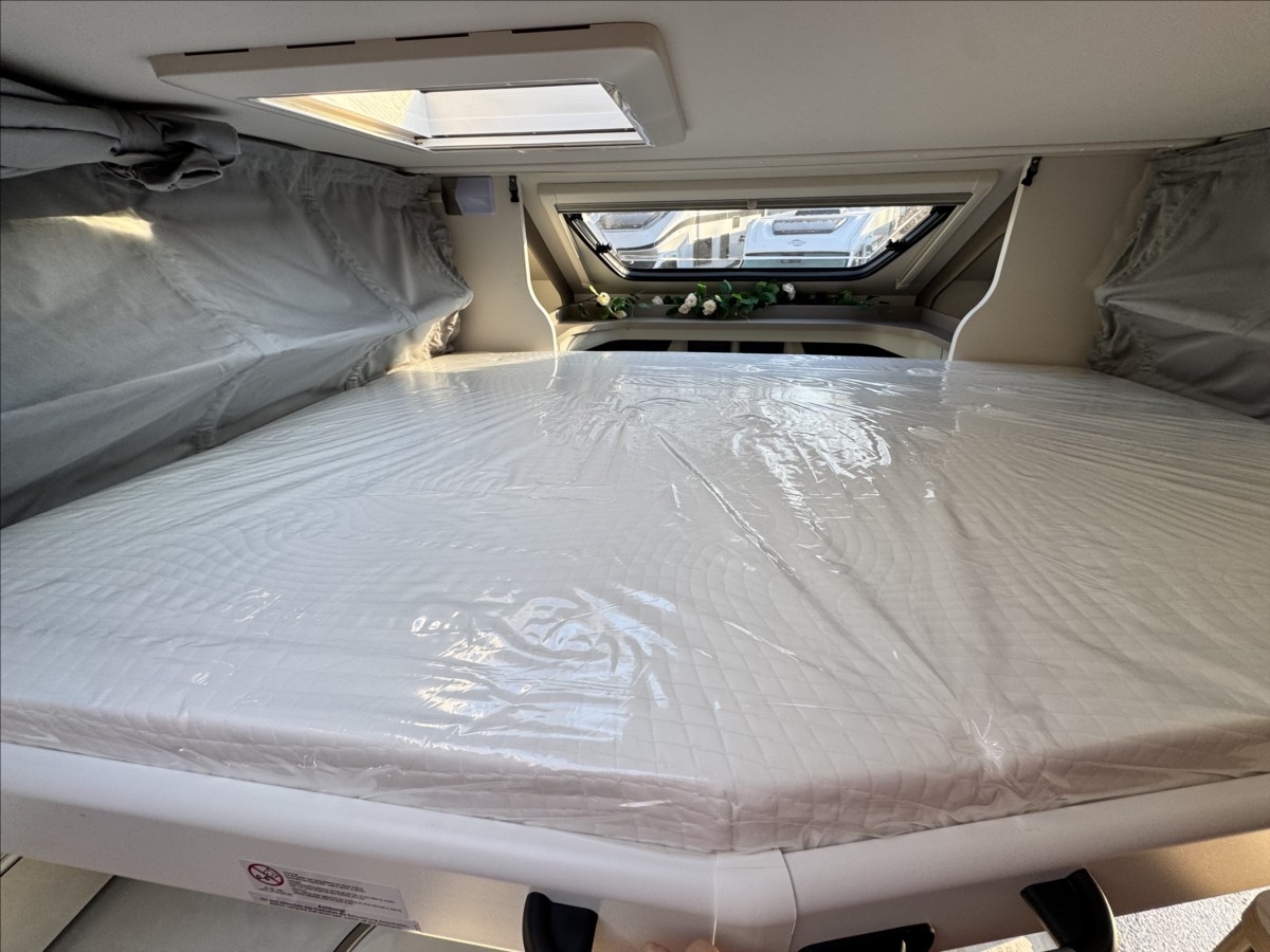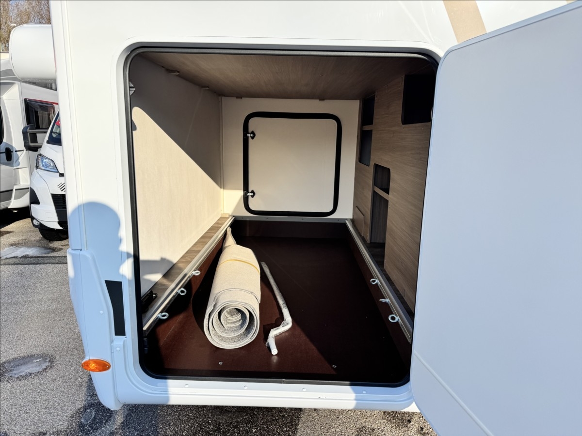Zadní podélné postele s úpravou na jednolůžko + spouštěcí postel, samostatný sprchový kout + oddělená koupelna s WC a umyvadlem, druhé dveře do garáže, izolovaná a vyhřívaná odpadní nádrž, topení Truma Combi 6E, bezpečnostní rámová okna, všechna okna se zatemněním a moskytiérou, dveřní moskytiéra, přední zatemnění REMIS, panoramatické střešní okno Skyroof, velká lednice s odděleným mrazákem 12/230V/plyn, kabelová příprava pro solární panel, koberec v obytné části, elektricky vyhřívaná podlaha, Bi-Xenony, ... VOZIDLO SKLADEM