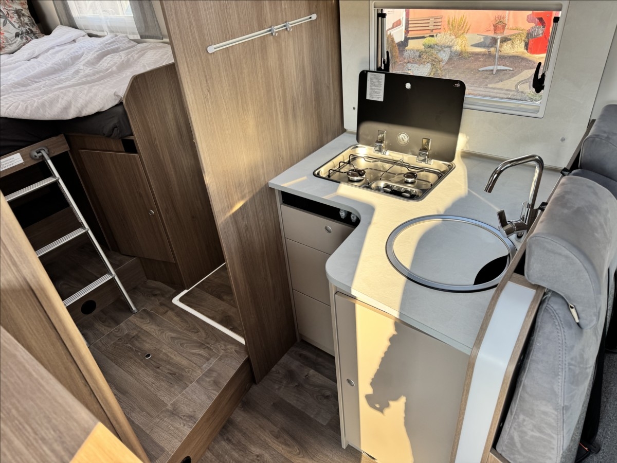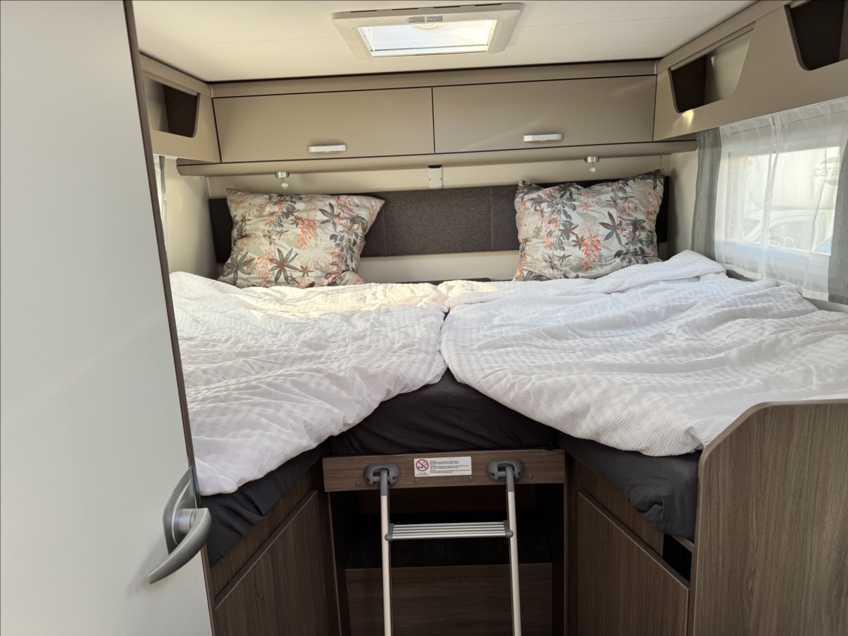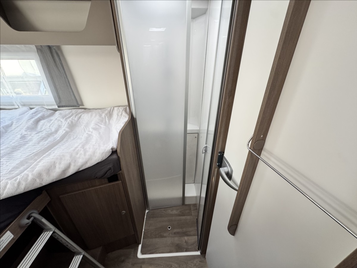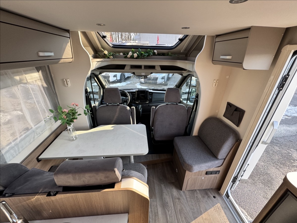 Zadní podélné postele s úpravou na jednolůžko + spouštěcí postel, samostatný sprchový kout + oddělená koupelna s WC a umyvadlem, druhé dveře do garáže, izolovaná a vyhřívaná odpadní nádrž, topení Truma Combi 6E, bezpečnostní rámová okna, všechna okna se zatemněním a moskytiérou, dveřní moskytiéra, přední zatemnění REMIS, panoramatické střešní okno Skyroof, velká lednice s odděleným mrazákem 12/230V/plyn, kabelová příprava pro solární panel, koberec v obytné části, elektricky vyhřívaná podlaha, Bi-Xenony, ... VOZIDLO SKLADEM