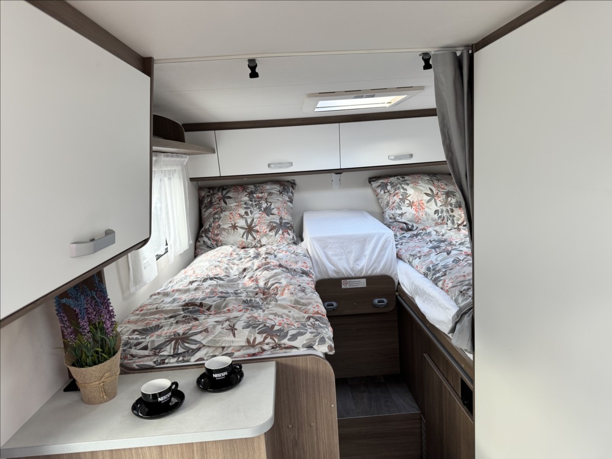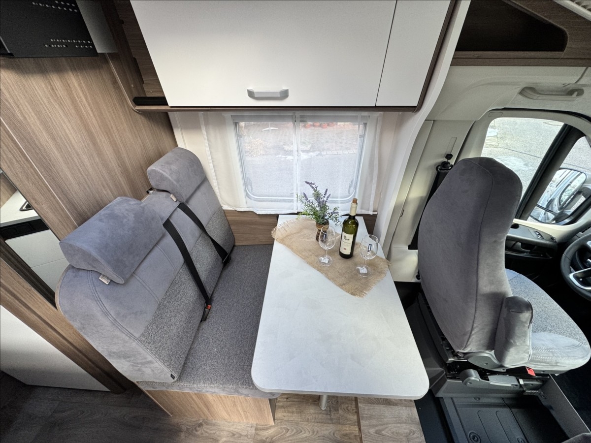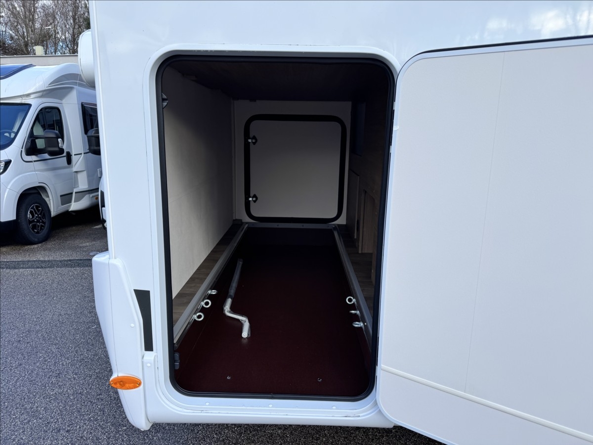 Zadní podélné postele s úpravou na jednolůžko, izolovaná a vyhřívaná odpadní nádrž, druhé dveře do garáže, dřevěný rošt v koupelně, příprava pro zadní kameru, zatemnění kabiny REMIS, všechna okna se zatemněním a moskytiérou, dveřní moskytiéra, topení Truma Combi 6E, lednice s mrazákem 12/230V/plyn, panoramatické střešní okno, příprava pro TV 12V, elektronická parkovací brzda, indukční dobíjení mobilního telefonu, automatické brzdění s detekcí chodců, varování před opuštěním jízdního pruhu, rozpoznávání dopravních značek, detekce únavy řidiče ..... Celková hmotnost 3500kg... Spaní pro 2/3 osoby, jízda pro 4 .... VOZIDLO SKLADEM