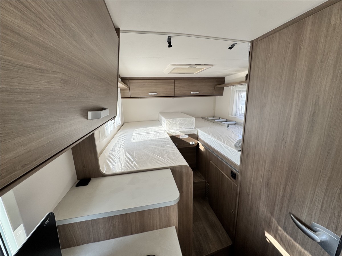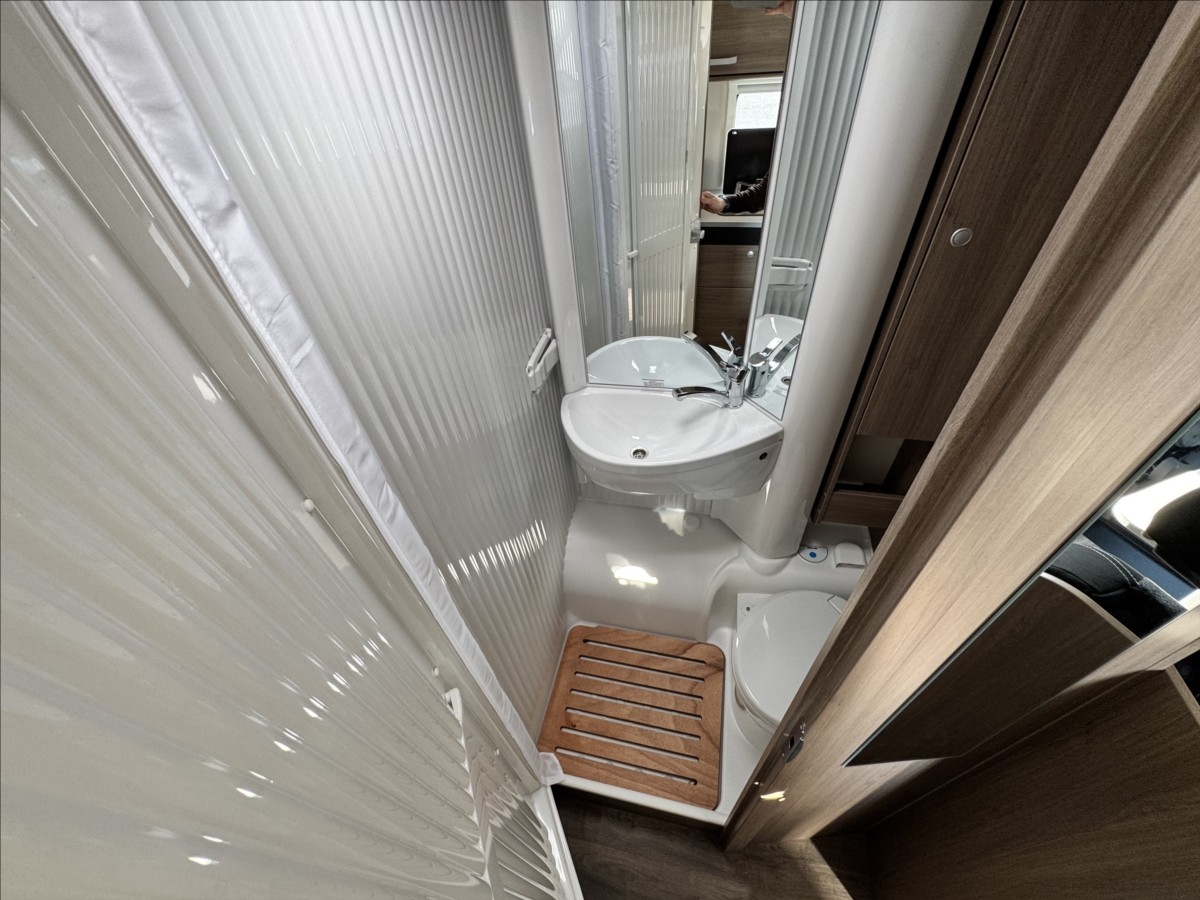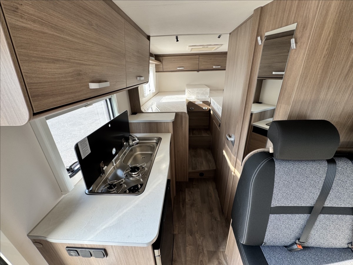 Zadní podélné postele s úpravou na jednolůžko, izolovaná a vyhřívaná odpadní nádrž, palivová nádrž 90l, druhé dveře do garáže, dřevěný rošt v koupelně, příprava pro zadní kameru, zatemnění kabiny REMIS, všechna okna se zatemněním a moskytiérou, dveřní moskytiéra, topení Truma Combi, lednice s mrazákem 12/230V/plyn ..... Celková hmotnost 3500kg... Spaní pro 2/3 osoby, jízda pro 4 .... VOZIDLO SKLADEM