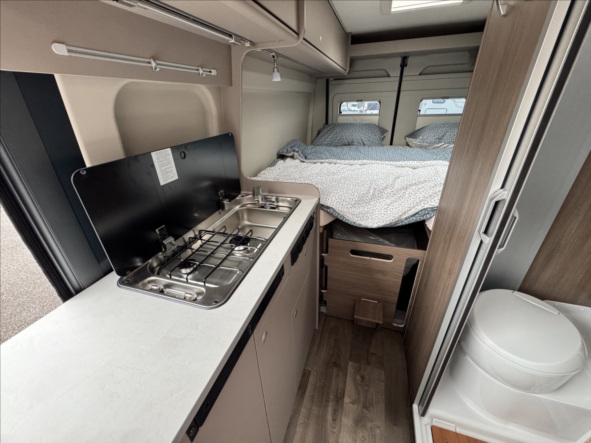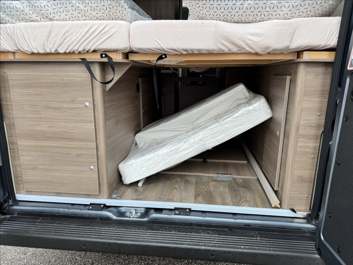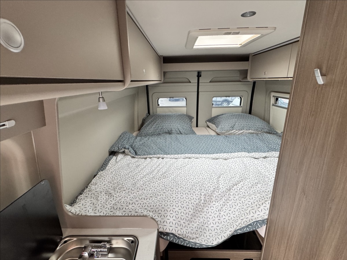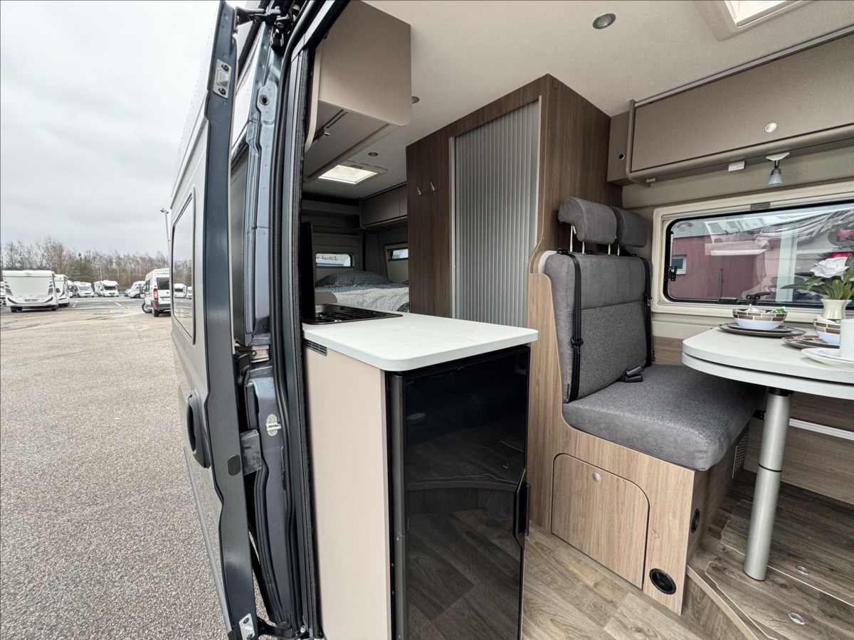Leasing možný, Možné financování vozidla., Zadní podélné postele s úpravou na jednolůžko + sezení upravitelné na lůžko, kabelová příprava pro zadní kameru, dřevěný rošt v koupelně, zatemnění kabiny REMIS, všechna okna se zatemněním a moskytiérou, dveřní moskytiéra, palivová nádrž 90l, lednice s mrazákem, izolovaná a vyhřívaná odpadní nádrž, elektronická ruční brzda, naftové topení TRUMA Combi 4D, palivová nádrž 90L, bezpečnostní rámová okna, ... Celková hmotnost: 3300kg ... Spaní pro 3/4 osoby, jízda pro 4 osoby.... VOZIDLO SKLADEM