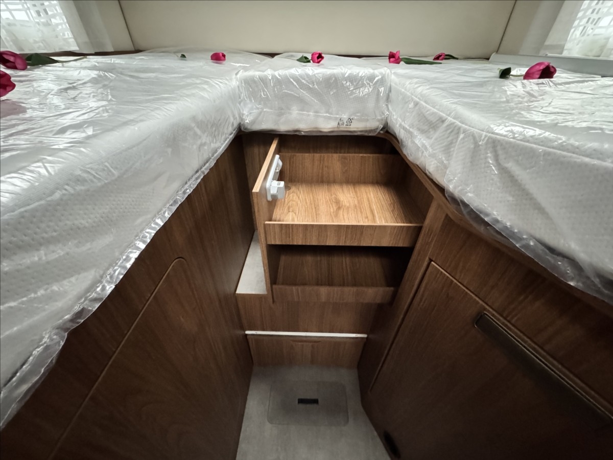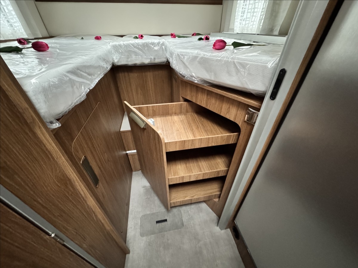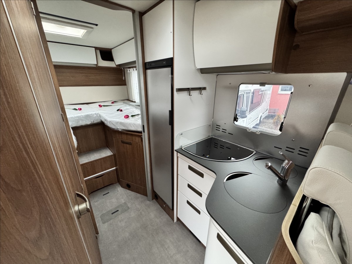 Leasing možný, Možné financování vozidla., Zadní podélné postele s úpravou na jednolůžko, el. spouštěcí postel, automatická lednice s mrazákem 12/230V/plyn, topení TRUMA COMBI, všechna okna se zatemněním a moskytiérou, dveřní moskytiéra, Multimediální systém 9'' Pioneer, Apple Car Play/Android Auto, Digitální přístrojová deska, Indukční dobíjení mobilního telefonu, zatemnění kabiny REMIS, dřevěný rošt v koupelně, izolovaná a vyhřívaná odpadní nádrž, DuoControl se systémem Crash senzor.... Celková hmotnost 3500kg ... VOZIDLO SKLADEM