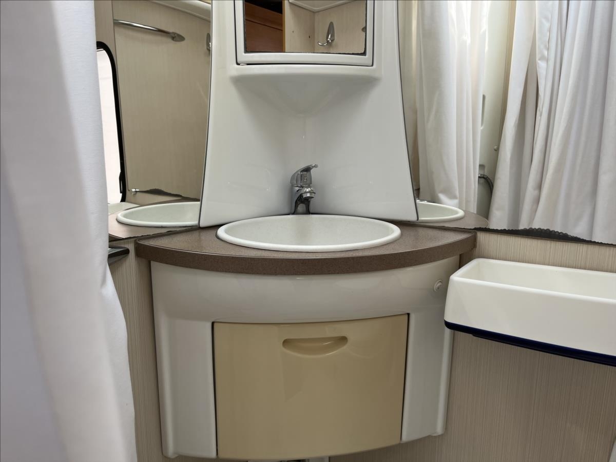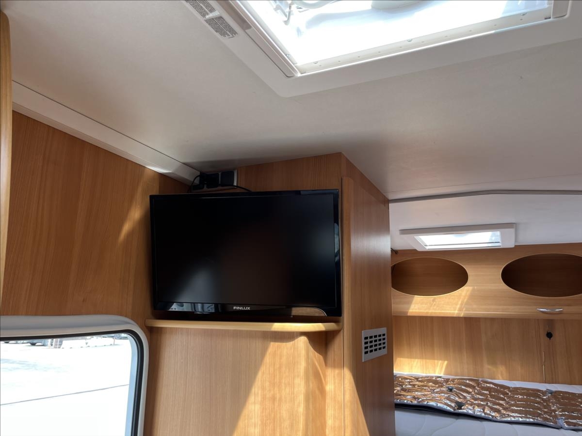 Zadní příčná postel + spaní v alkovně, lednice 12/230V/plyn, televize + DVBT anténa, velká koupelna se sprchou a WC, velká šatní skříň, všechna okna se zatemněním a moskytiérou, nové protialergenní matrace, kompletní oprava motoru - vstřiky atd... Celká délka: 610cm, výška: 293cm, šířka: 230cm ... Celková hmotnost: 3500kg, provozní: 2838kg