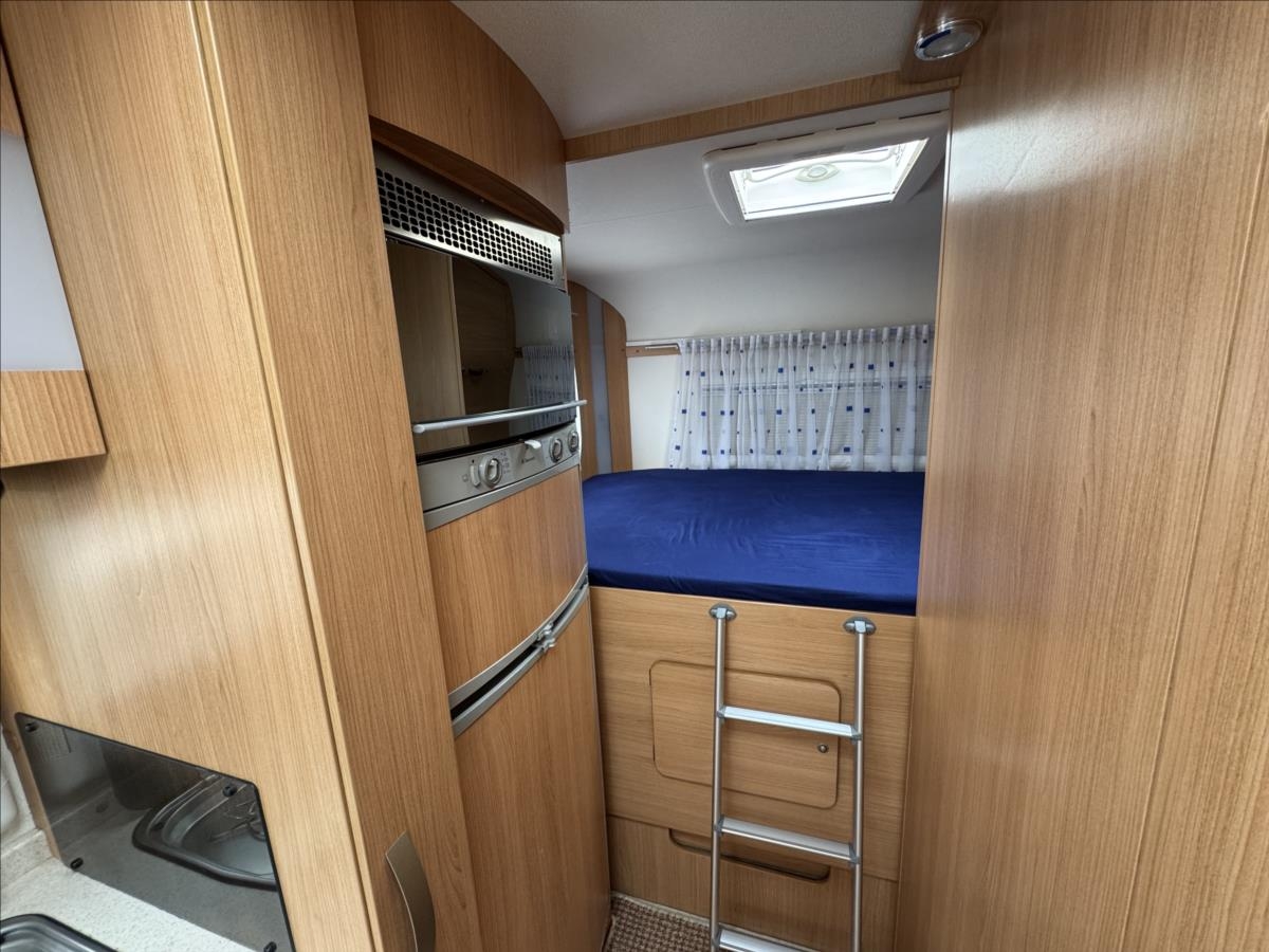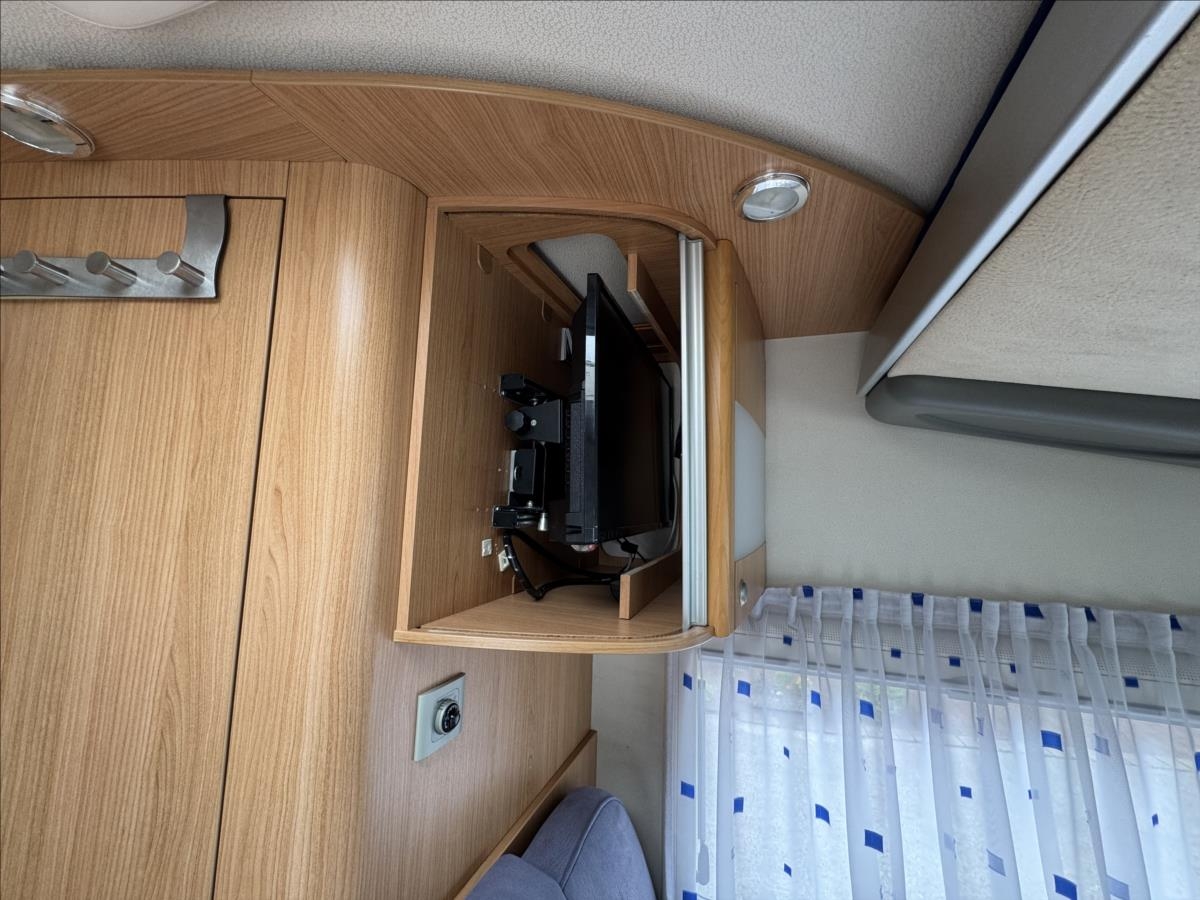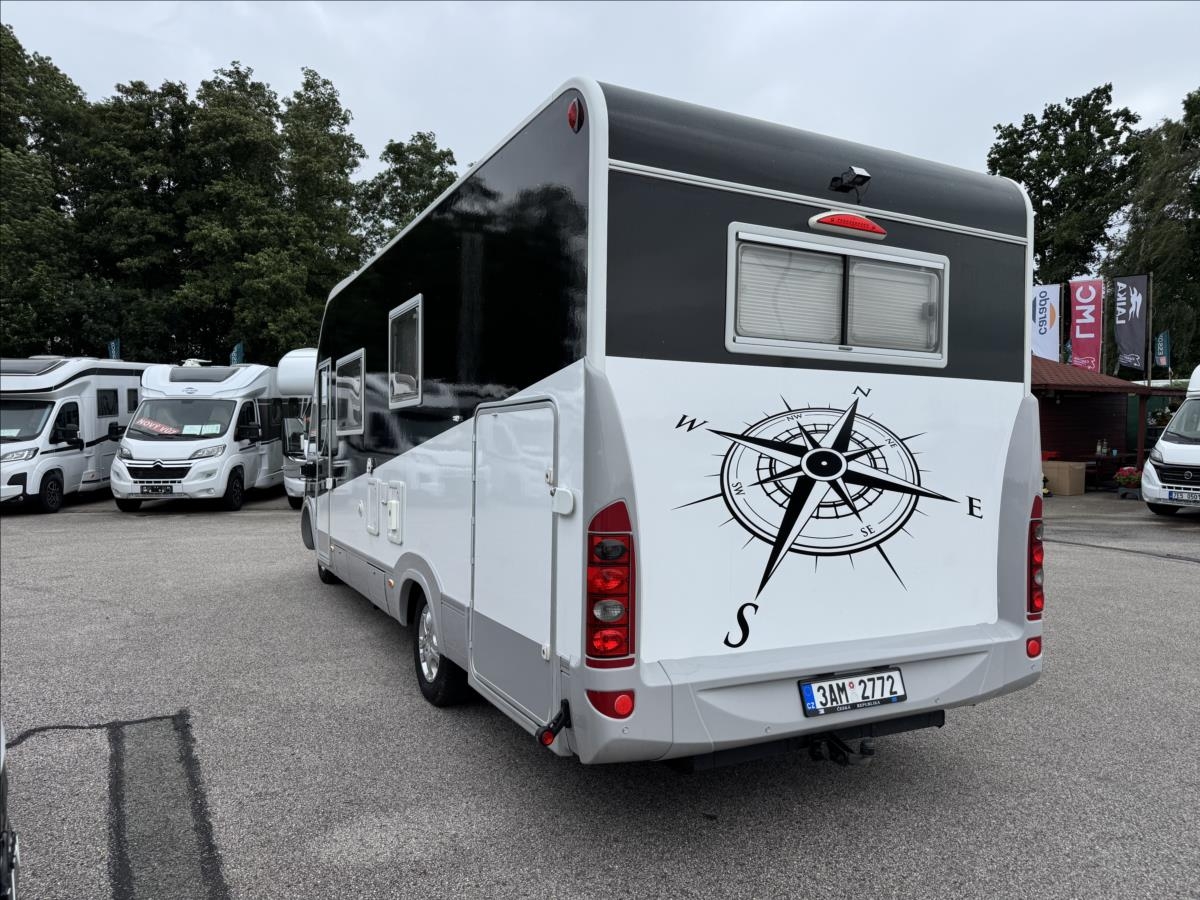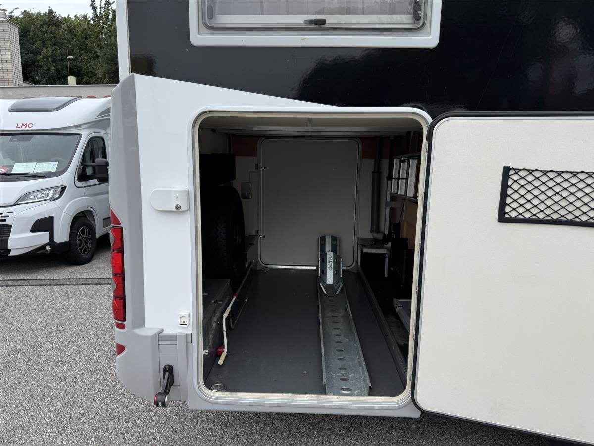 Zadní příčná postel + spouštěcí lůžko, velká lednice s odděleným mrazákem 12/230V/plyn, plynová trouba, digestoř, velká šatní skříň, SOG, 2x nástavbová baterie + solární panel, automatický satelit + 2x TV na 12V, všechna okna se zatemněním a moskytiérou, velká garáž s držákem na skútr, koupelna se samostatným sprchovým koutem, tažné zařízení 2000/750kg.... Celková délka: 720cm, výška: 296cm, šířka: 229cm ... Celková hmotnost: 3500kg, provozní: 2966kg ... Spaní i jízda pro 4 osoby