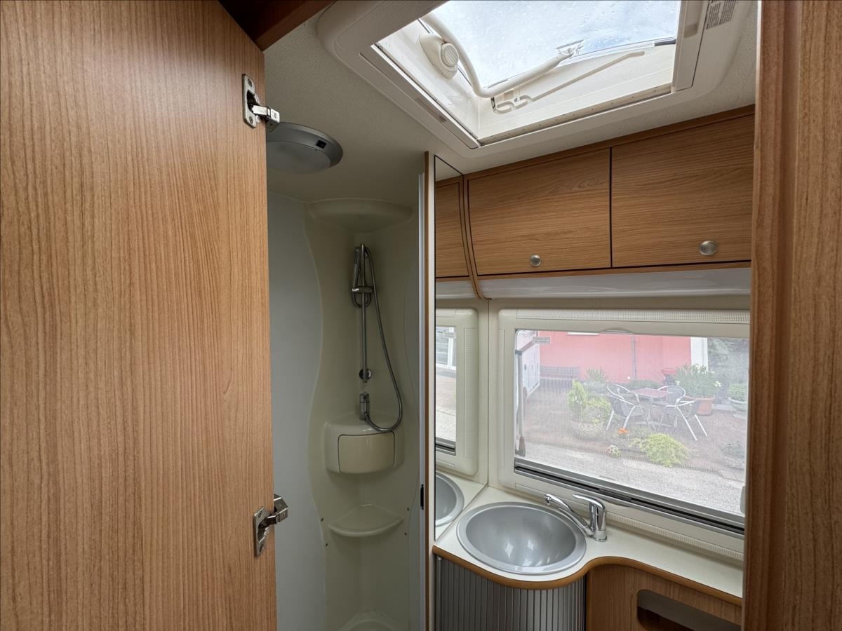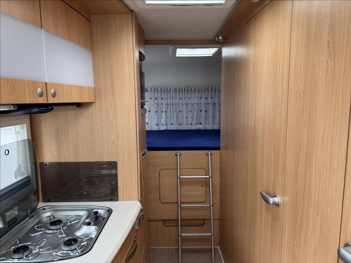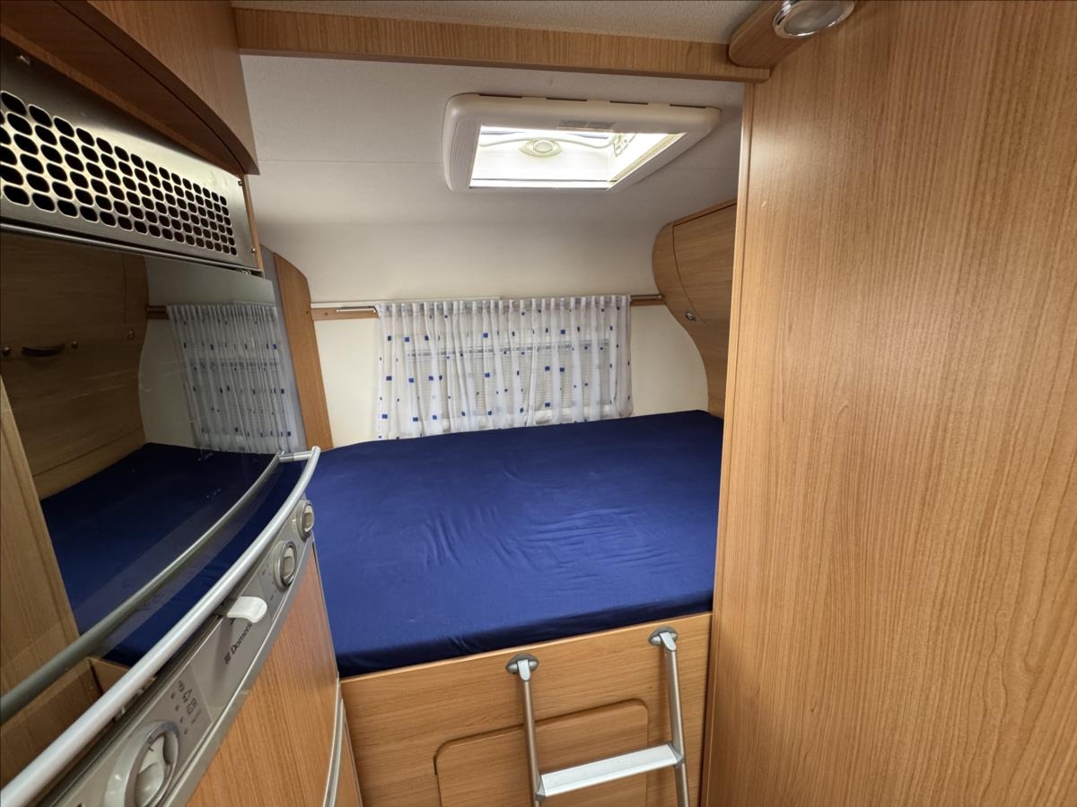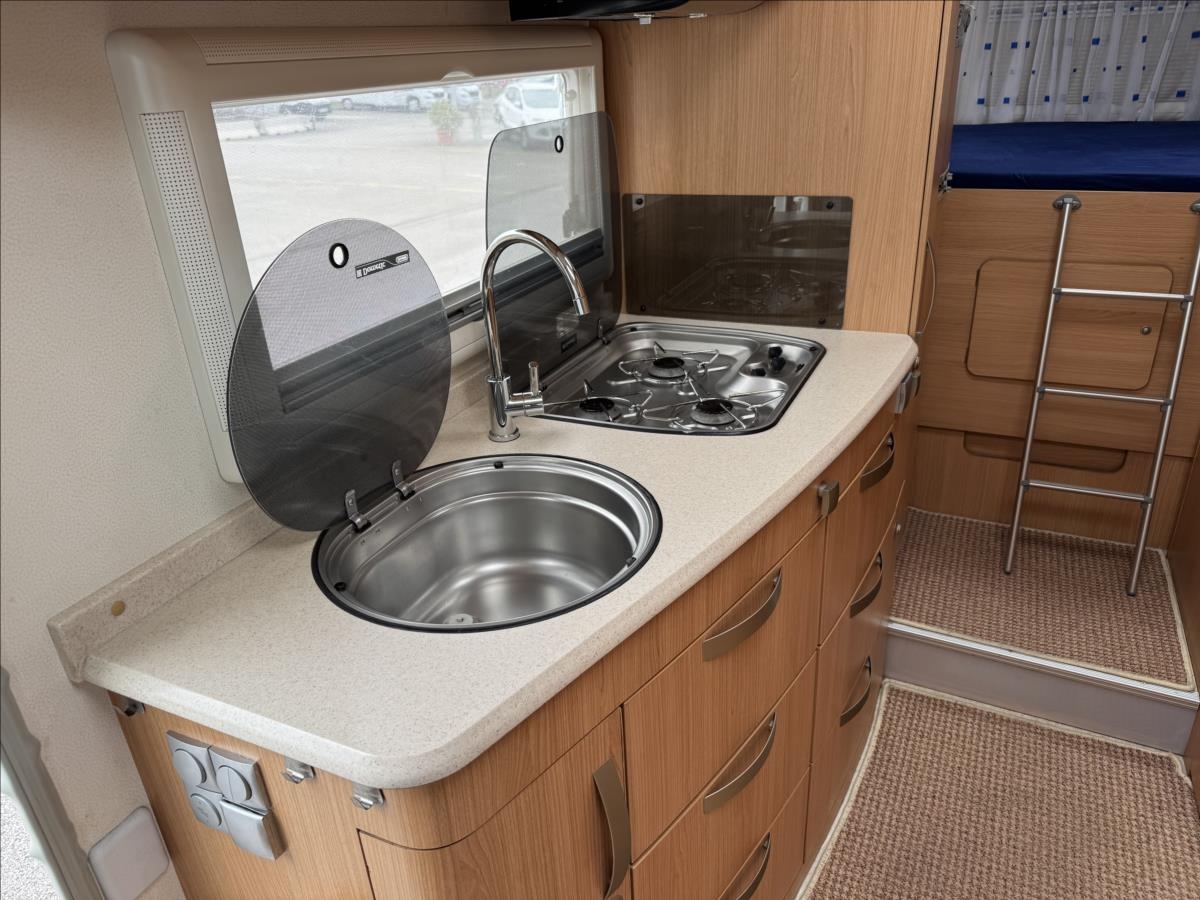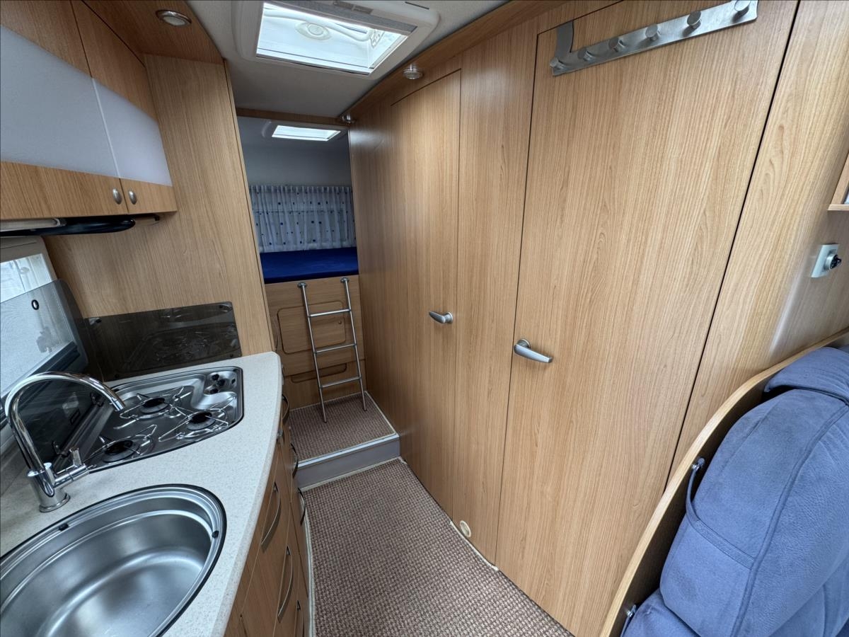Zadní příčná postel + spouštěcí lůžko, velká lednice s odděleným mrazákem 12/230V/plyn, plynová trouba, digestoř, velká šatní skříň, SOG, 2x nástavbová baterie + solární panel, automatický satelit + 2x TV na 12V, všechna okna se zatemněním a moskytiérou, velká garáž s držákem na skútr, koupelna se samostatným sprchovým koutem, tažné zařízení 2000/750kg.... Celková délka: 720cm, výška: 296cm, šířka: 229cm ... Celková hmotnost: 3500kg, provozní: 2966kg ... Spaní i jízda pro 4 osoby