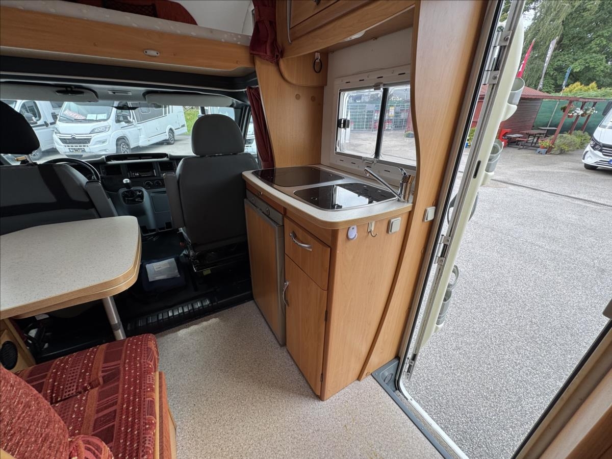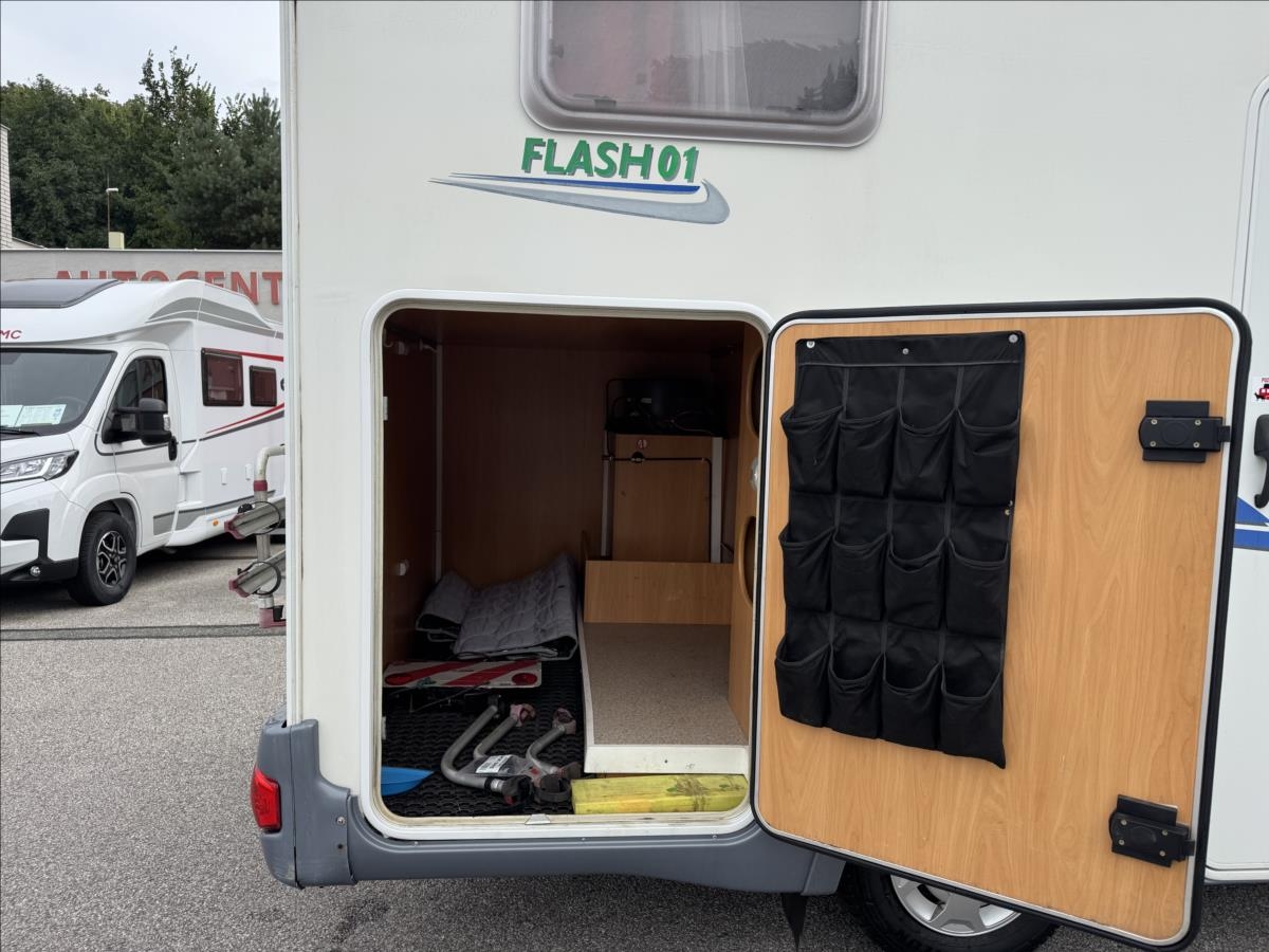 Zadní příčná postel + spaní v alkovně, koupelna s WC + umyvadlem a sprchou, naftové topení, TV na 12V, solární panel, nosič 2 kol ..... Celková hmotnost: 3500kg, provozní: 2833kg... Celková délka: 590cm, výška: 293cm a šířka: 230cm
