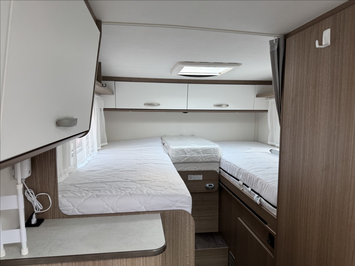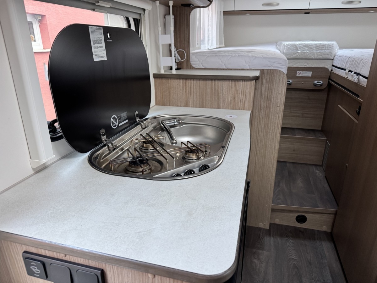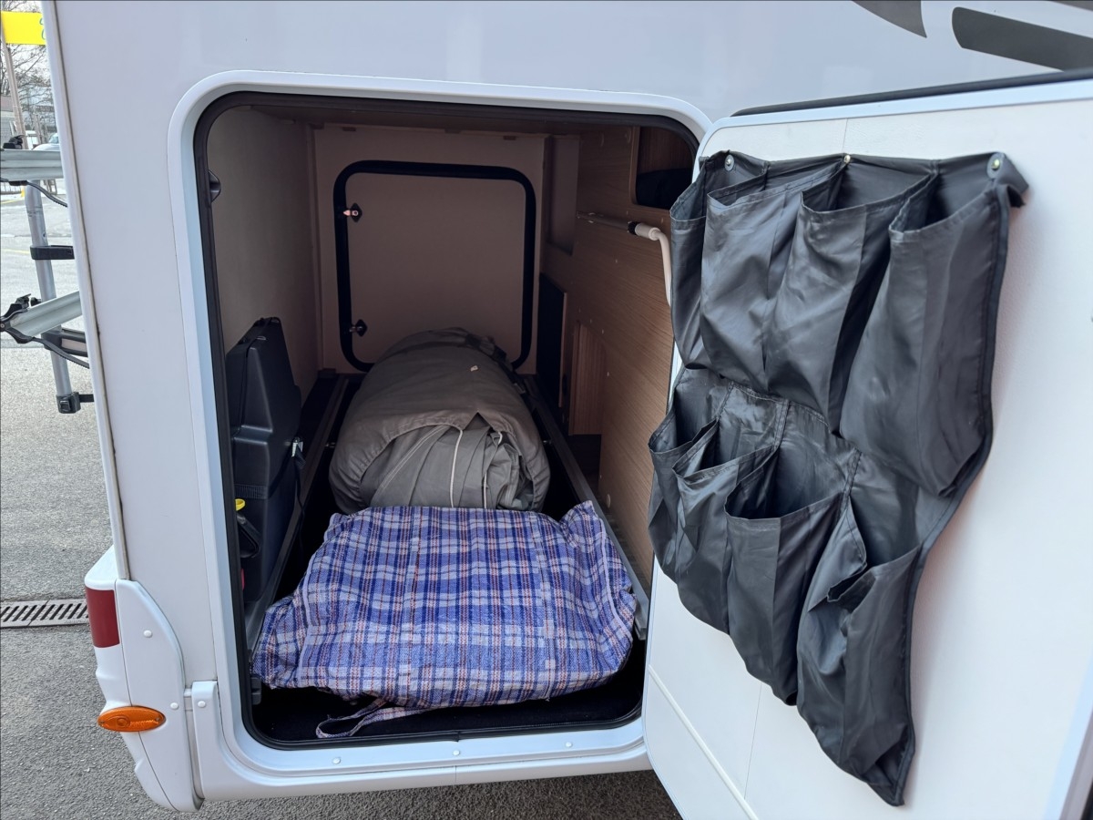 Leasing možný, Možné financování vozidla., Zadní podélné postele s úpravou na jednolůžko, lednice s mrazákem 12/230V/plyn, automatický satelit + TV 12V, topení Truma Combi, nosič kol, přední zatemnění, všechna okna se zatemněním a moskytiérou, dveřní moskytiéra, ... Celková hmotnost 3500kg, provozní: 2870kg... Spaní pro 2/3 osoby...Jízda pro 4 osoby