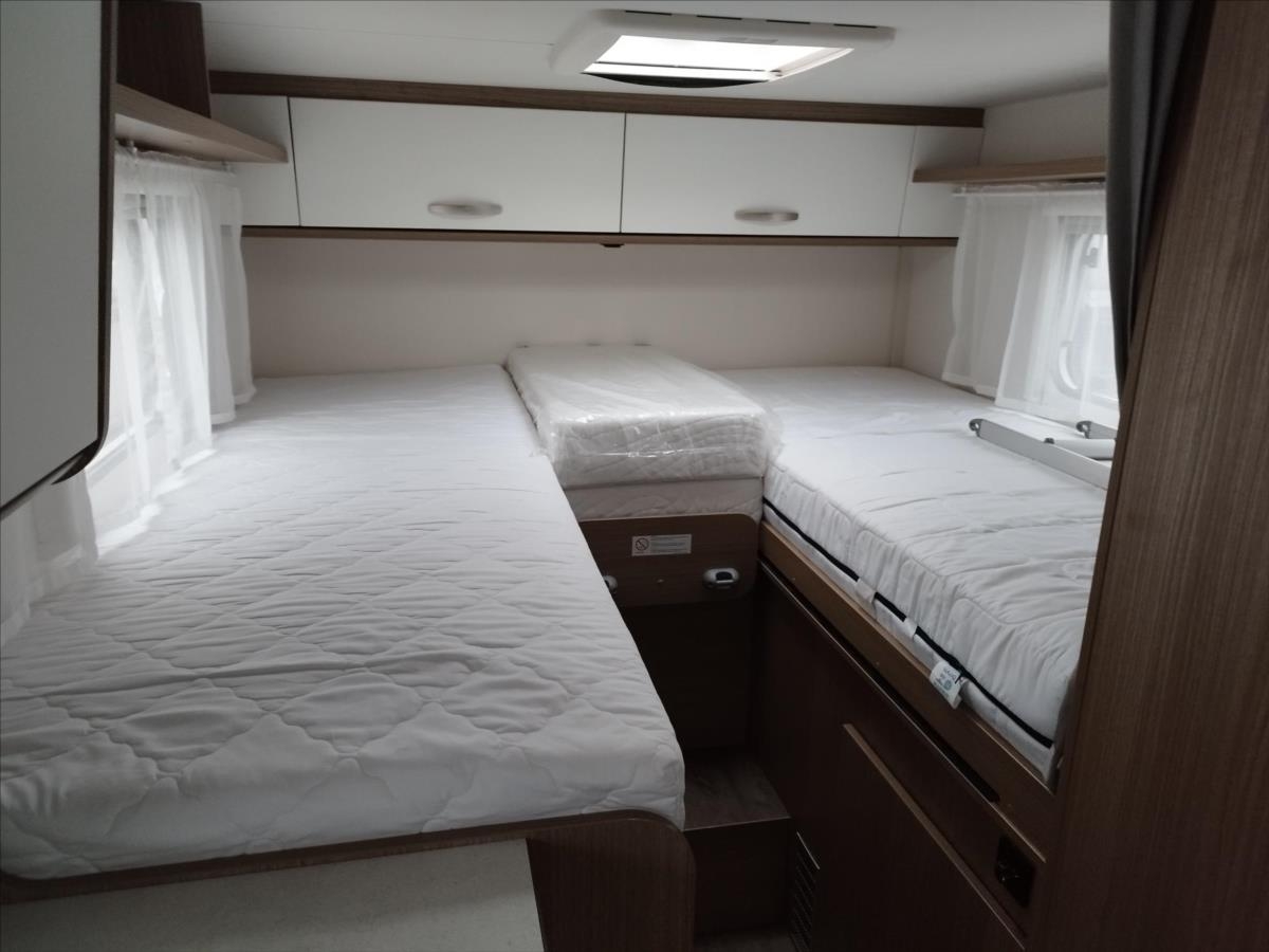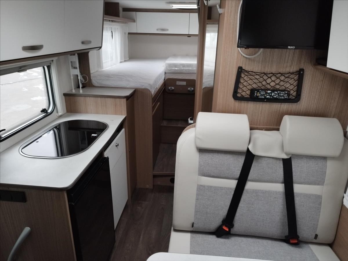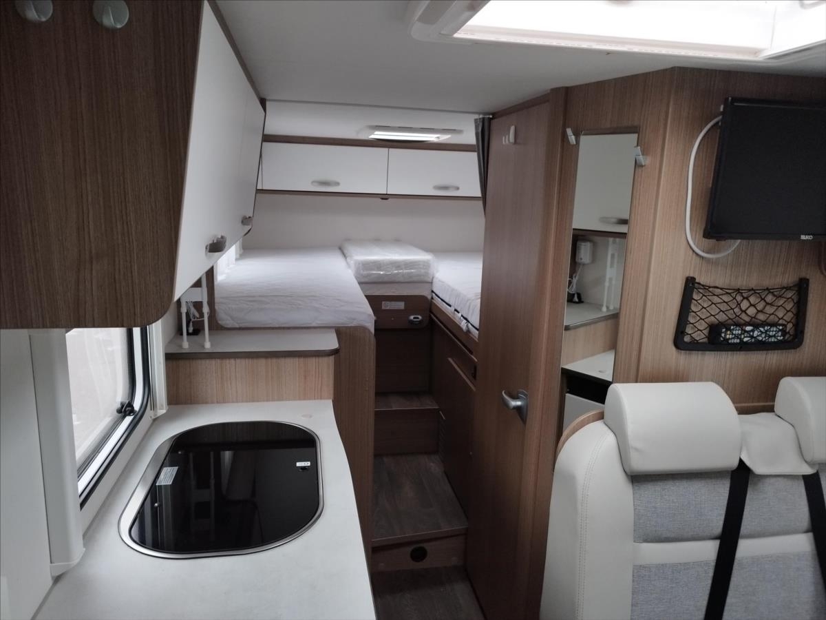 Leasing možný, Možné financování vozidla., Zadní podélné postele s úpravou na jednolůžko, lednice s mrazákem 12/230V/plyn, automatický satelit + TV 12V, topení Truma Combi, nosič kol, přední zatemnění, všechna okna se zatemněním a moskytiérou, dveřní moskytiéra, ... Celková hmotnost 3500kg, provozní: 2870kg... Spaní pro 2/3 osoby...Jízda pro 4 osoby