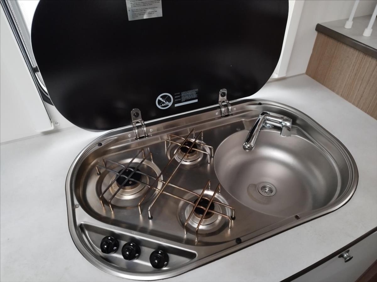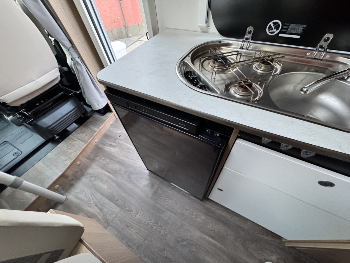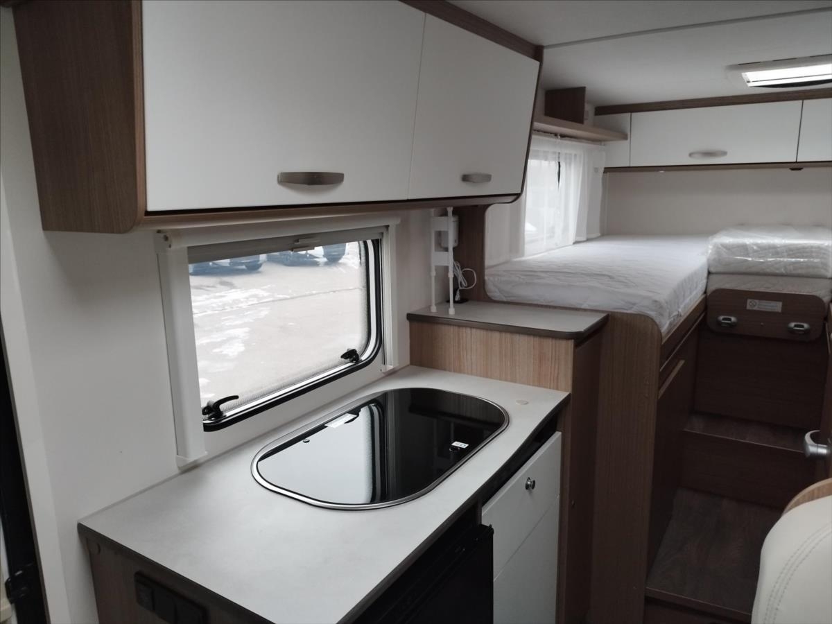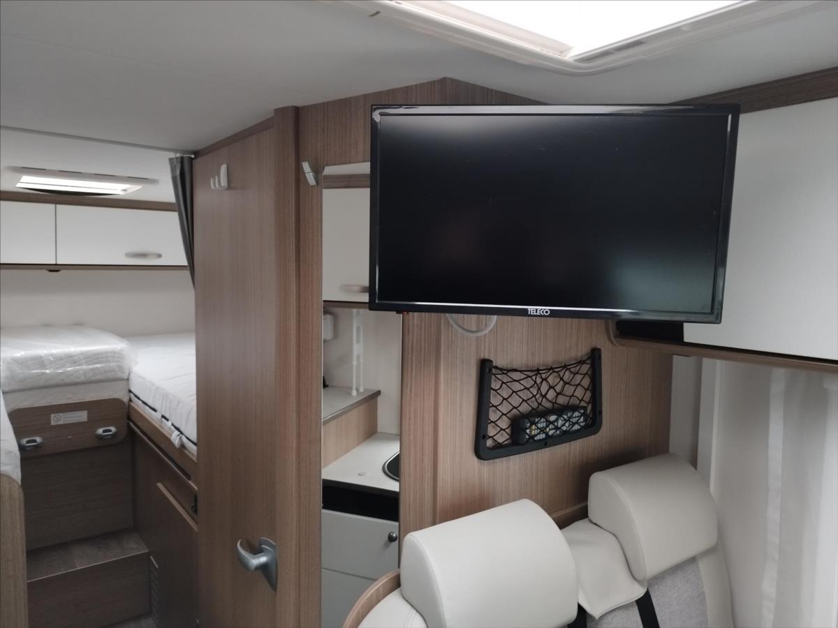 Leasing možný, Možné financování vozidla., Zadní podélné postele s úpravou na jednolůžko, lednice s mrazákem 12/230V/plyn, automatický satelit + TV 12V, topení Truma Combi, nosič kol, přední zatemnění, všechna okna se zatemněním a moskytiérou, dveřní moskytiéra, ... Celková hmotnost 3500kg, provozní: 2870kg... Spaní pro 2/3 osoby...Jízda pro 4 osoby