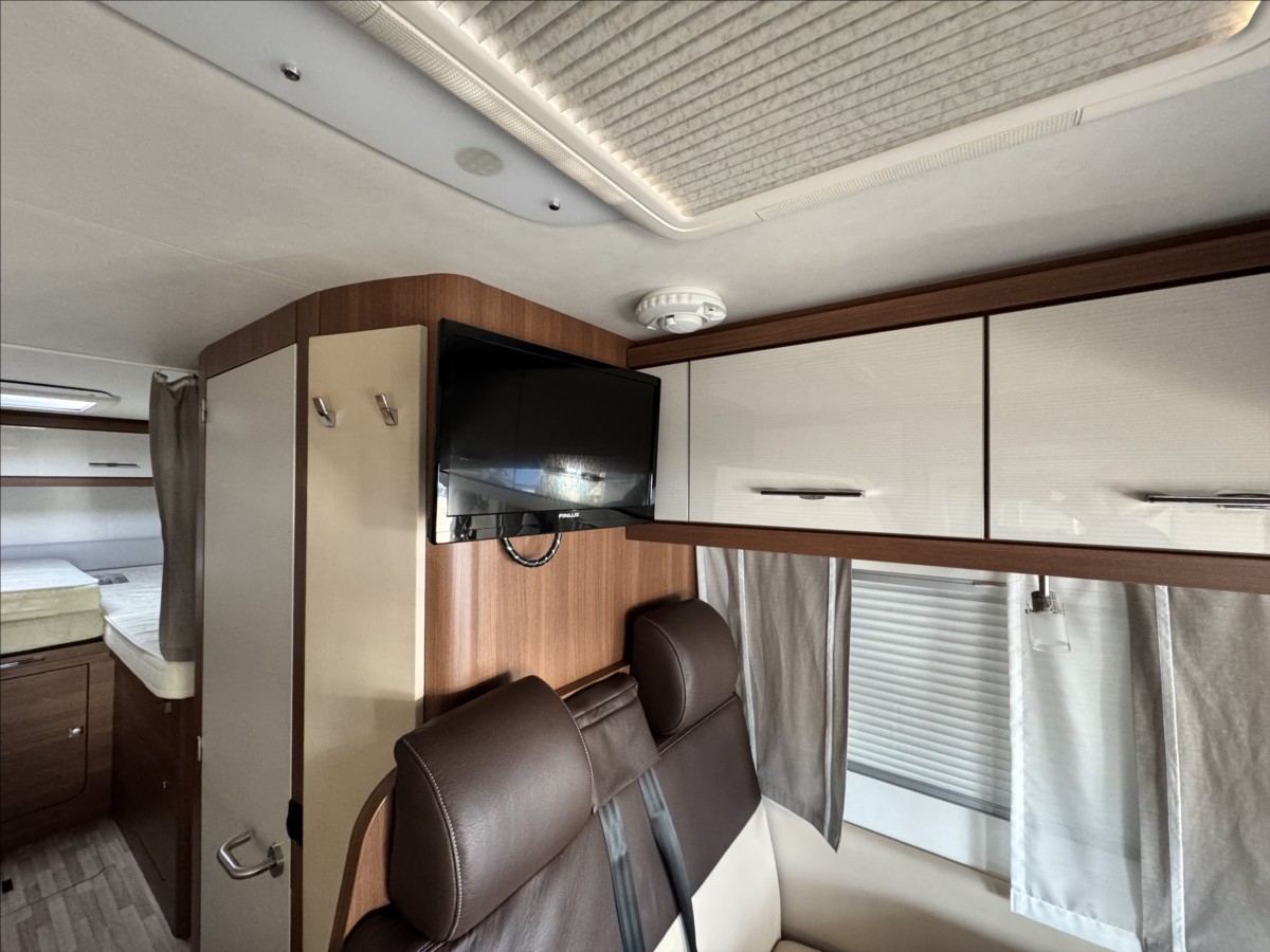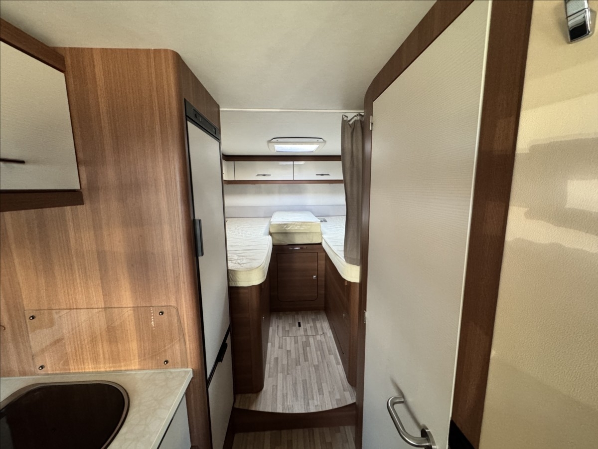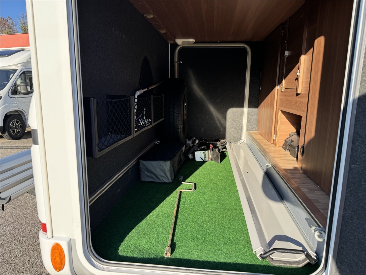 První majitel, Leasing možný, Možné financování vozidla., Zadní podélné postele s úpravou na jednolůžko, spouštěcí postel na kabinou, topení TRUMA Combi, automatický satelit + TV, multimédium Zenec, zadní podpěrné nohy, nosič na 4 kola, nosič na skútr, venkovní přípojka na sprchu, DuoControl, velká lednice s mrazákem 12/230V/plyn, nástavbová baterie LiFePo, zadní přídavné měchy ... Celková hmotnost: 3500kg, provozní: 3046kg ... vozidlo u nás servisováno ... 5 míst na jízdu