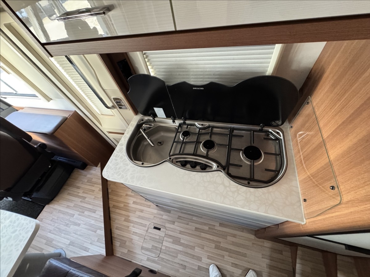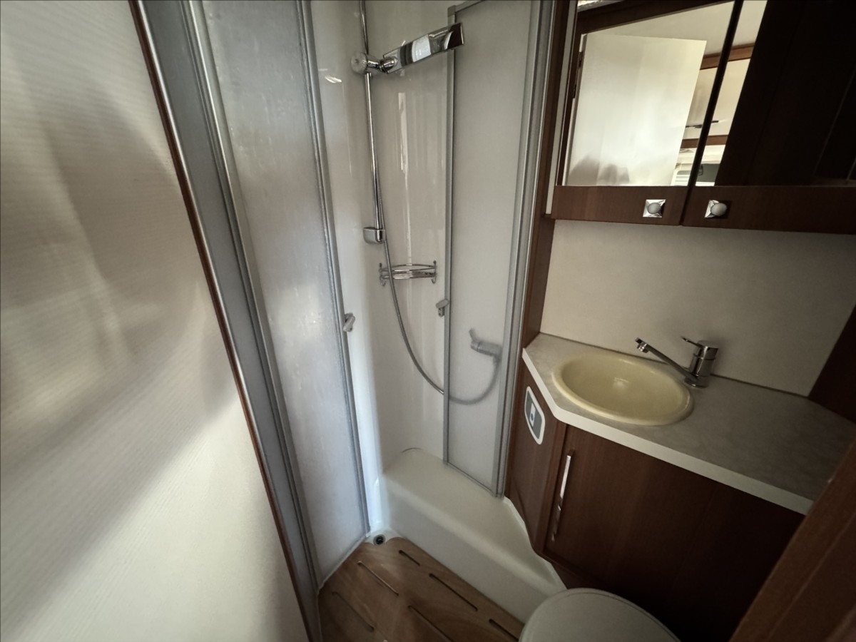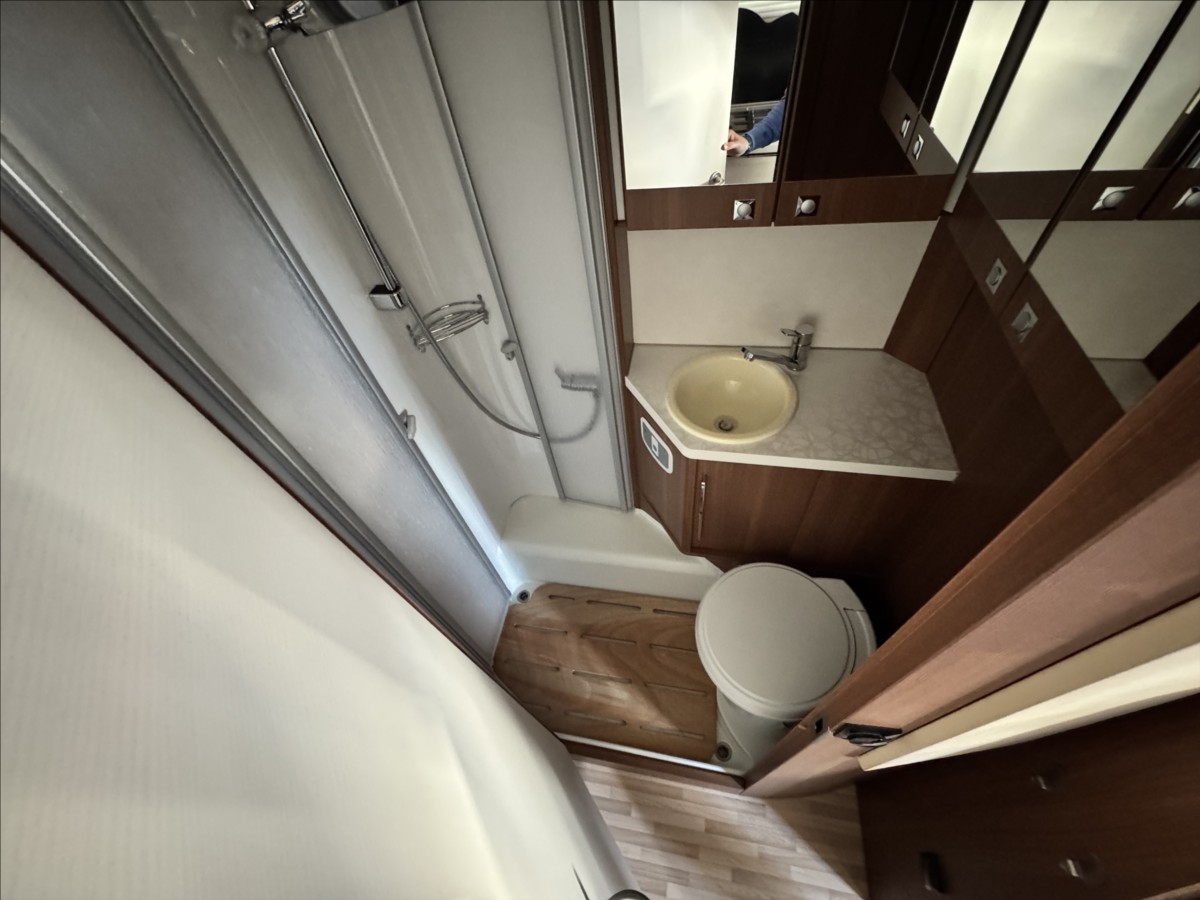 První majitel, Leasing možný, Možné financování vozidla., Zadní podélné postele s úpravou na jednolůžko, spouštěcí postel na kabinou, topení TRUMA Combi, automatický satelit + TV, multimédium Zenec, zadní podpěrné nohy, nosič na 4 kola, nosič na skútr, venkovní přípojka na sprchu, DuoControl, velká lednice s mrazákem 12/230V/plyn, nástavbová baterie LiFePo, zadní přídavné měchy ... Celková hmotnost: 3500kg, provozní: 3046kg ... vozidlo u nás servisováno ... 5 míst na jízdu