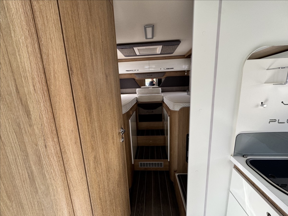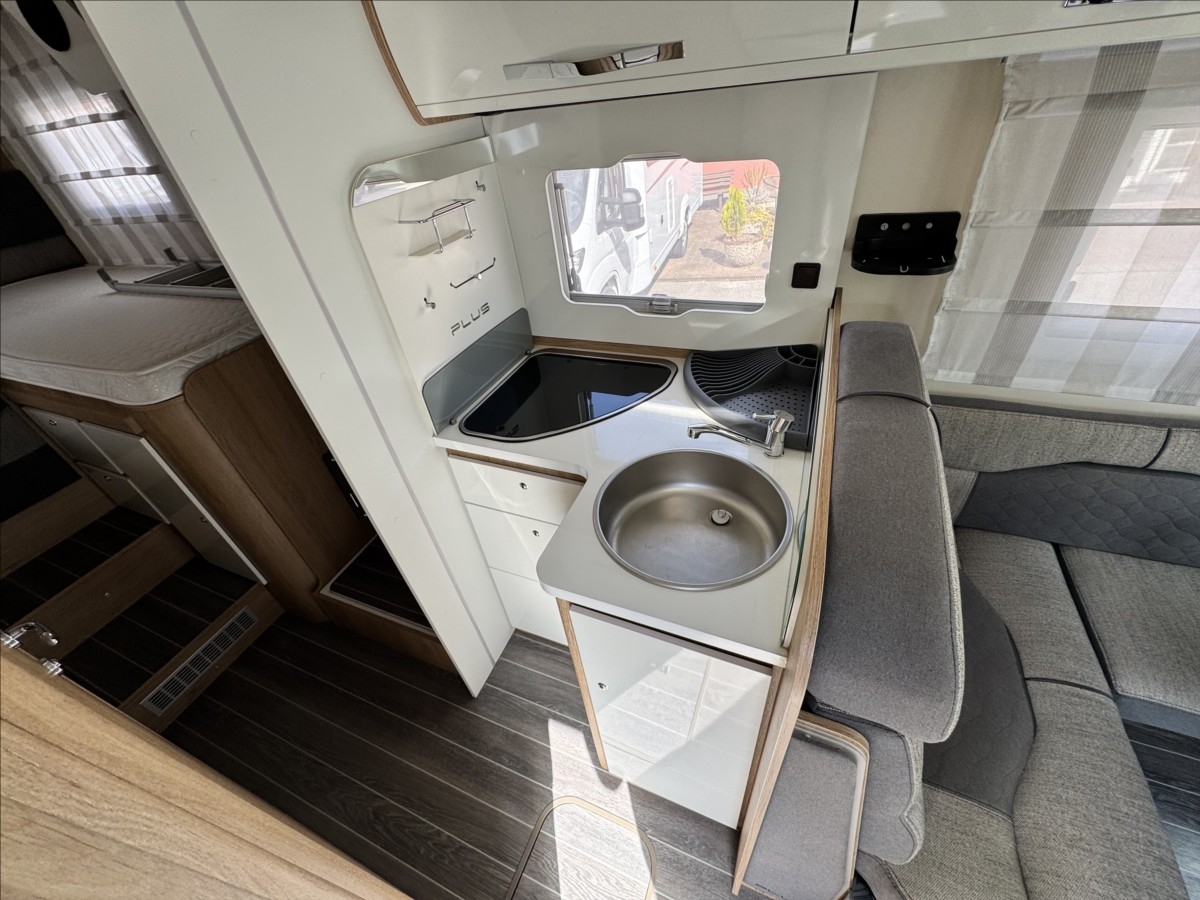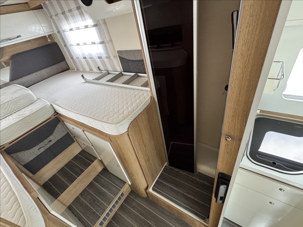 První majitel, Možné financování vozidla., Zadní podélné postele s úpravou na jednolůžko, spouštěcí postel, nástavbová klimatizace, solární panel + měnič napětí 2000W do rozvodu, LiFePo nástavbová baterie, nosič kol, tažné zařízení 2000/750kg, velká garáž + 2x dveře, bezpečnostní zámky na všech dveřích, DuoControl, velká lednice s mrazákem 12/230V/plyn, zadní přídavné měchy, všechna okna se zatemněním a moskytiérou ... Velice hezké a udržované vozidlo od 1. majitele ... Celková hmotnost 3500kg, provozní 2983kg ... Jízda pro 5 osob